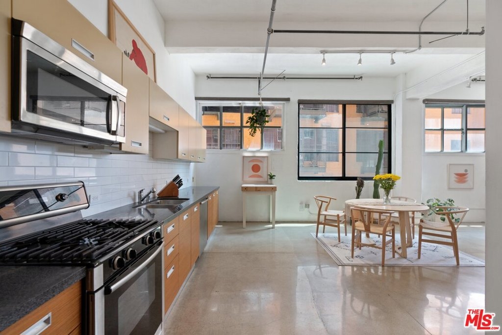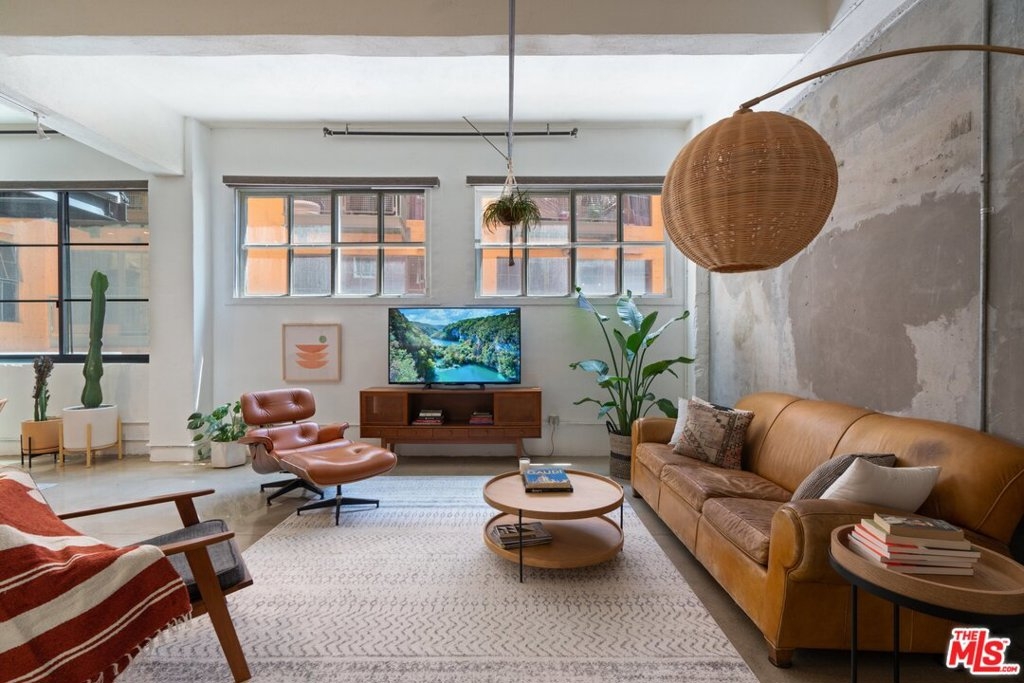 3D Tour: bit.ly/Eckardt-303 A striking loft in the DTLA Fashion District with ample square footage. Once a garment manufacturing building and now converted into the historic Eckardt Lofts, this impressive home features soaring high ceilings, polished concrete floors, and a stunning wall of windows that welcome in the morning & afternoon light. The inviting living room offers an expansive open space ideal for entertaining friends & family with plenty of room for a home office, while tucked away around the corner sits the bedroom. A sleek, modern kitchen offers stainless-steel Bosch appliances, new subway tile backsplash, and granite countertops. In the bathroom, enjoy a deep soaking tub, in-unit washer & dryer, and extra storage. As a historic Mills Act approved building, homeowners receive a reduced property tax bill saving up to 70% off! Being a part of the Santee Village community, residents enjoy several amenities including a rooftop pool, multiple rooftop spas, gym, BBQ grills, sundeck, rooftop basketball court, 24/7 security, and more. Conveniently located next to many of LA's newest and best restaurants and the brand new Apple Store, this home is in one of the newest development hotspots with more opening every day!