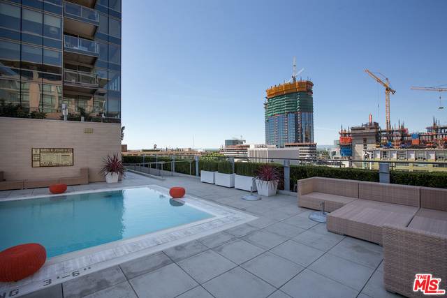 EVO features incredibly modern architecture, resort-style amenities and rooftop retreats, impeccably designed interiors and a location that puts you in Downtown Los Angeles' hottest new neighborhood - just steps from L.A. LIVE and STAPLES Center.This 1 bedroom, 2 bath corner unit features amazing views and a private balcony overlooking the pool. It has custom wood floors, electric shades. Each room has been custom designed with the highest quality wall coverings and decor.
