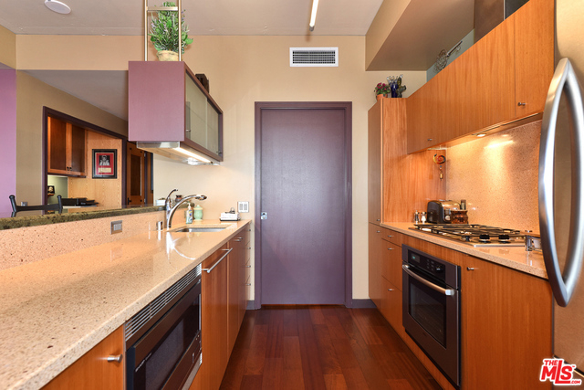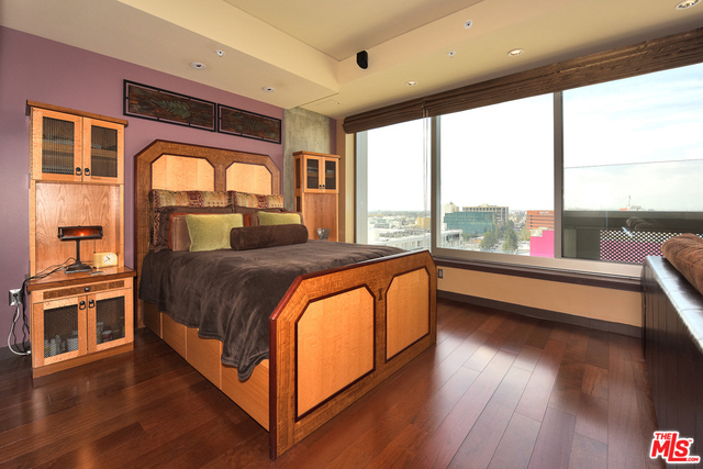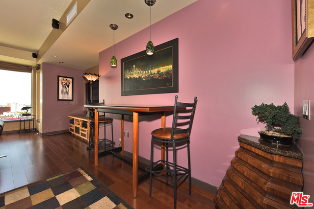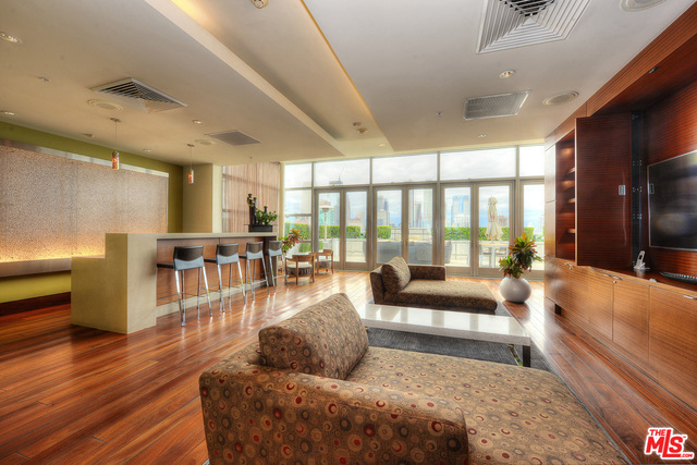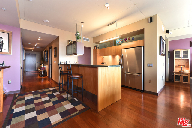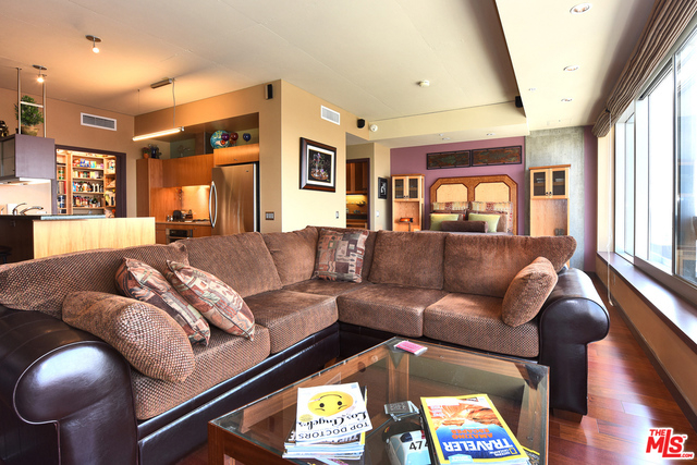 Sunny 1 bed 1.5 bath loft boasts newer hardwood floors, gallery entry, custom art lighting, custom exotic wood built-in desk and dresser, surround sound speakers and rare separate storage unit w/floor-to-ceiling built-ins. EVO is one of DTLA's most luxurious full service high-rise communities with 24-hour front desk and security, doorman, bell service, sparkling rooftop pool and spa, outdoor kitchen and BBQ area, well-equipped gym and rooftop lounge lounge with terrace and amazing views of the ever-changing downtown skyline!