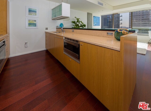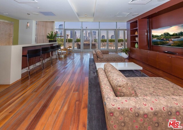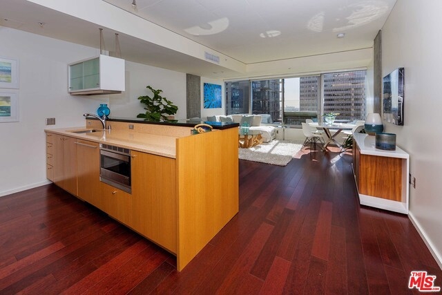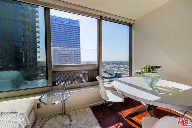 South Pakrs Luxurious Residences The EVO full service building located downtown walking distance to restaurants and Staples Center. This unit is on the 14th floor with large city views. One bedroom and one bath loft with quality finishes. Brazilian hardwood flooring thru-out. Gourmet kitchen and bathroom with Caesar stone counter tops. Stainless steel appliances. New paint thru out. Hotel like amenities pool, fitness room, outdoor BBQ, lounge room and outdoor terrance. 24 hour security and concierge. 1 car parking space. Must see.