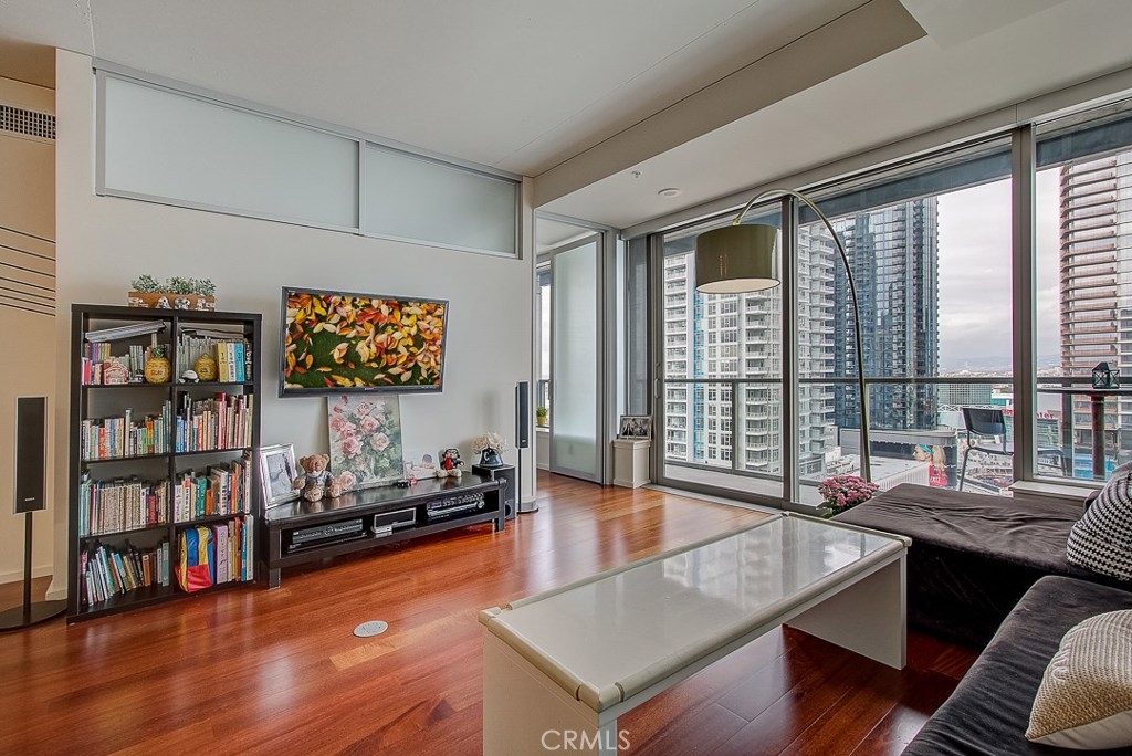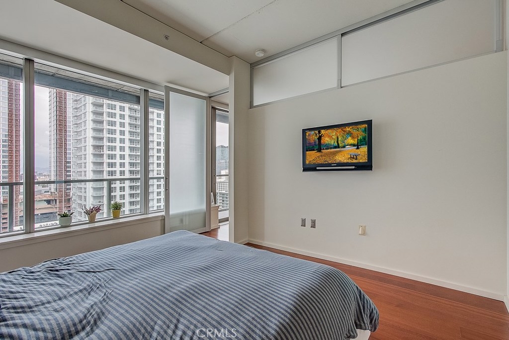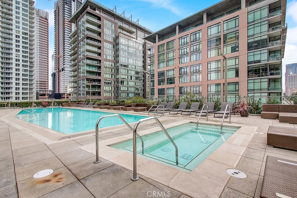 MUST SEE!! This Stunning 2 bedroom 2 bath unit faces the Hollywood Hills with amazing views. One of 3 units with the largest Balcony. Located in a full service "Green" high rise, incredible amenity package including private rooftop an indoor/outdoor lounge patio. Fitness center located on the rooftop. Infinity pool/spa and common area. The 24hr concierge/doorman provides safety and comfort! The building is maintained impeccably and everyone is given a warm welcome upon arrival by the Concierge. The building has employed the same cleaning crew and maintenance team for almost 10 years so you have comfort in knowing and seeing familiar faces throughout the building. Recent upgrades include electric shutter blinds in living room and master bedroom. Sliding door for the Master along with window installation for each rooms to provide privacy which wasn't part of original build. The kitchen overlooks the living room and a Fantastic view of the city. Lots light, however, the Shutter Blinds provide a mask when needed. Walking distance to many of DTLA's attractions and restaurants.https://my.matterport.com/show/?m=HW3zdMB1N8z&brand=0