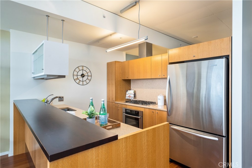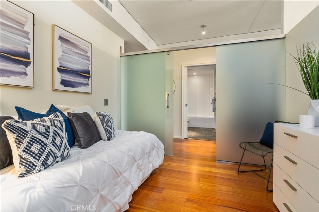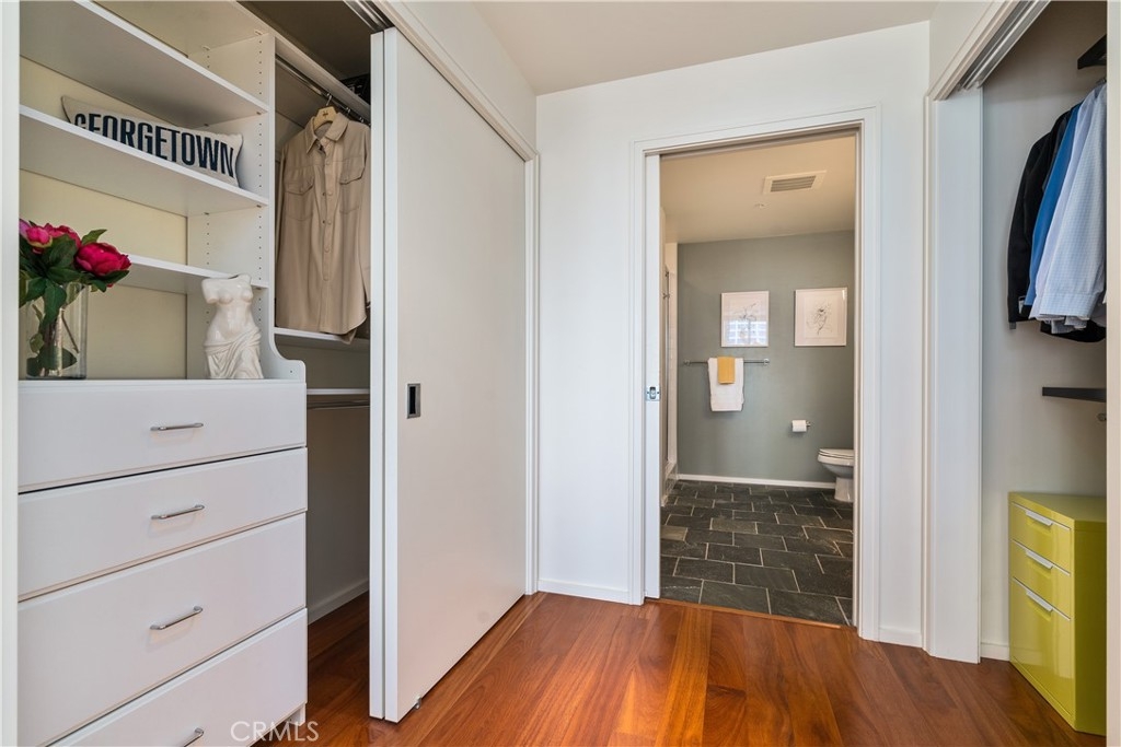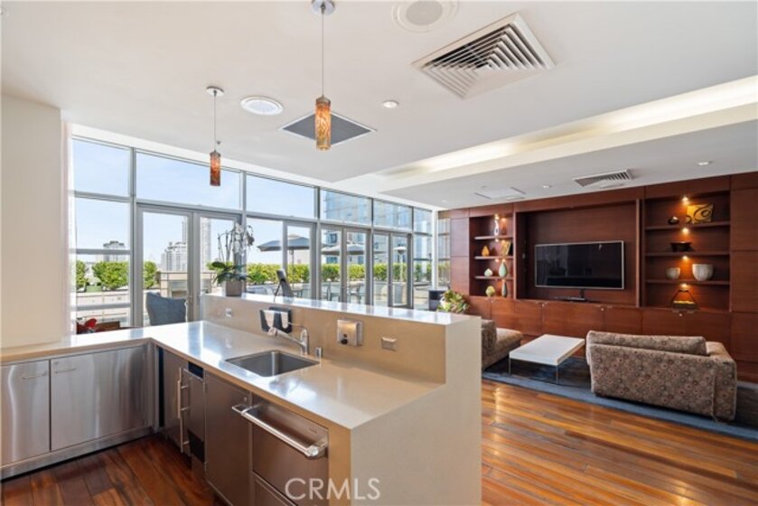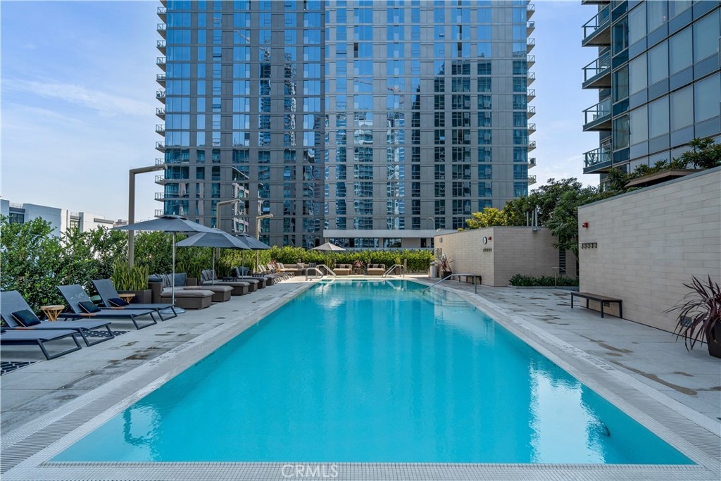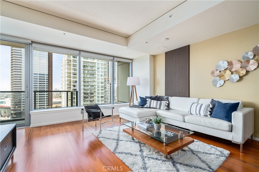 Live the L.A. downtown urban chic lifestyle in one of the most luxurious apartment buildings-The EVO. Enjoy 20th floor spectacular views that sweep over the entire city from every room. The Chefs kitchen boasts Caesarstone slab countertops and backsplash along with beautiful rich wood cabinetry. The super sized windows allow for lots of natural light to beam over the hardwood flooring throughout the entire residence. This unit also features custom closet built-ins in bedroom closet, laundry room closet, hallway closet and 2 dedicated deeded parking spaces. Need a little privacy or respite from all the fun-Living room and bedrooms offer Sheerweave manual roller shade blinds. Resort-style indulgences right at your doorstep including; newly renovated grand reception lobby with attendant, 24 Hour courtesy patrol, state of the art fitness center with skyline views, outdoor kitchen with bbq grills, fireplace and lounge seating, two-forty dramatic resident lounge, 6th floor open terrace plaza with pool and spa. Honestly, you may never want to leave home but when you do. You are steps to EVERYTHING DTLA has to offer; LA LIVE, Staples Center, Metro Lines, Convention Center, Whole Foods, Restaurants and entertainment.