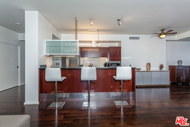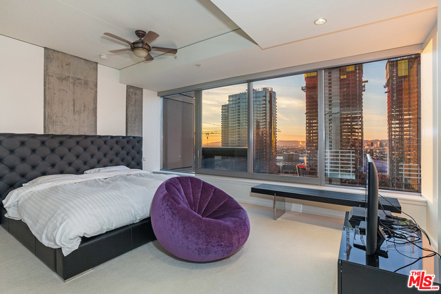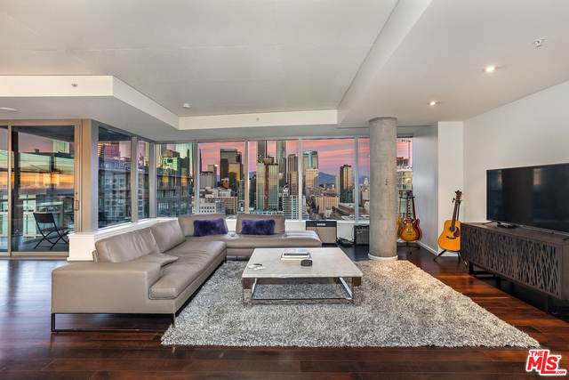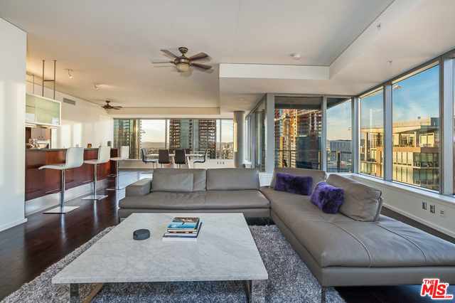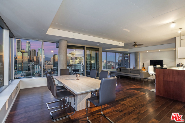 This stunning residence at EVO is the true embodiment of space, utility, and contemporary high-rise luxury-living fused with jaw-dropping views. Over 2,300 feet of living space allow for a bright and airy living experience accentuated by sweeping views from of the San Gabriel Mountains and iconic landmarks to the east, city lights and the Hollywood Hills to the north, and panoramic views to the west. This northwest corner soft-loft includes high ceilings, floor-to-ceiling windows with roller-shades, a large balcony, dark hardwood floors in the living areas, and Berber carpet in both bedrooms. This residence features an open kitchen including stainless steel appliances and a granite island, a laundry room with front-loading washer and dryer, extra storage space, and two parking spaces. Residents will enjoy all this building has to offer including 24-hour concierge and security, sixth-floor pool deck, spa and wet-bar, and a penthouse-level fitness center and resident's lounge.