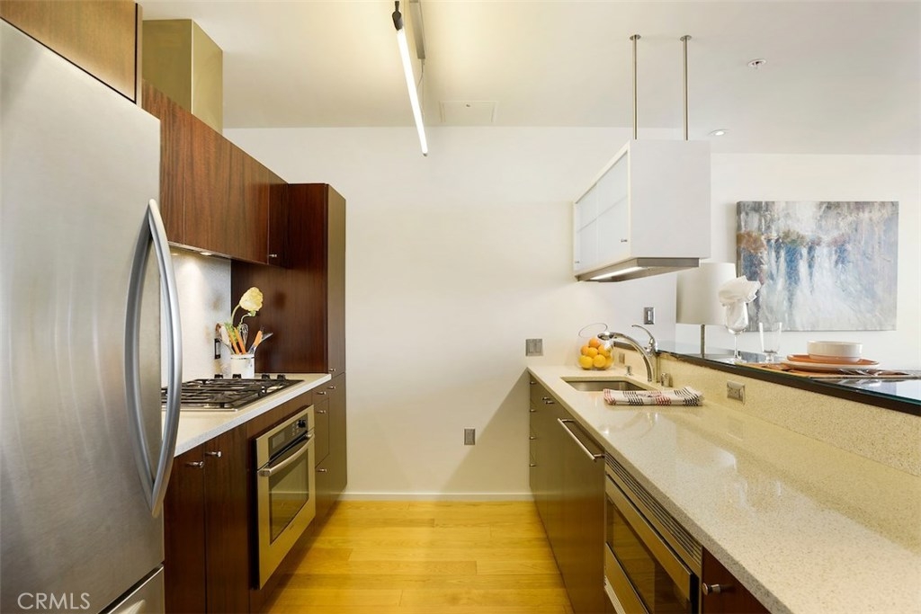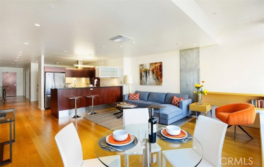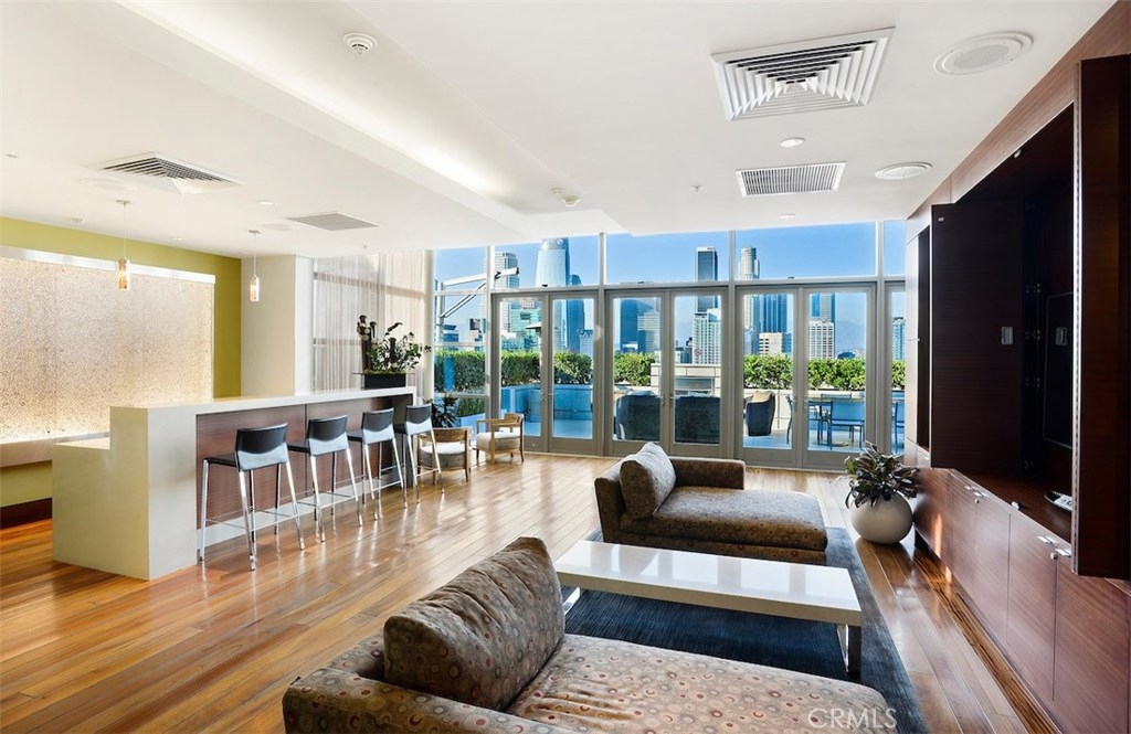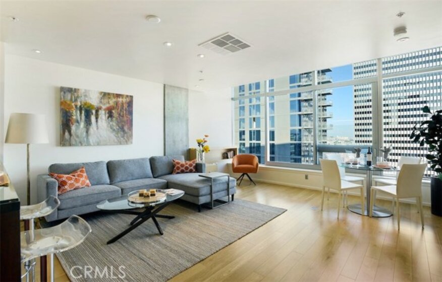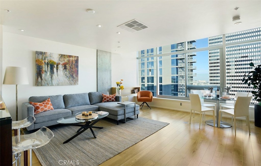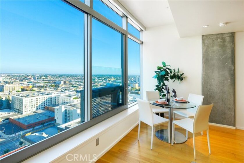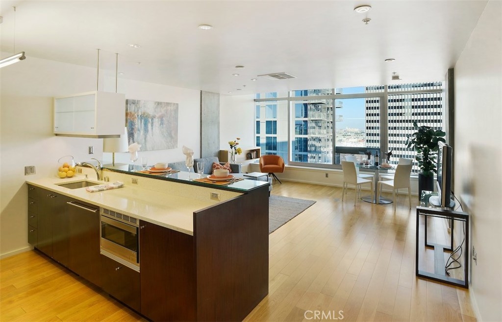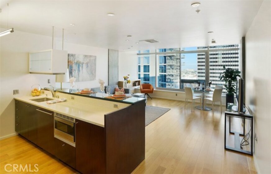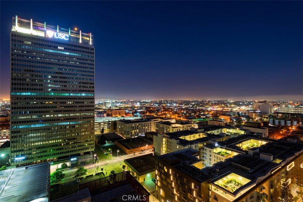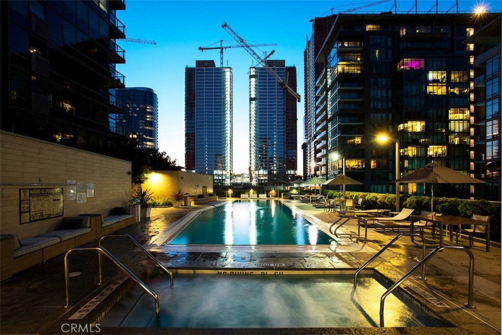 Luxurious and prestigious EVO residence in South Park. Experience Luxury urban living in one of the best developed high rise LEED certified buildings. Incredible luxury high-rise unit with an amazing view. Located on the 21st floor, directly below the penthouse level. Features includes A full-size kitchen w/ Euro-style cabinetry, stainless steel appliances and granite counters with an open concept dining and living areas. Smooth ceiling with recessed lightings, hardwood floors and remotely controlled blinds. Sizable laundry room with built in shelves. Remodeled & Modern bathroom. The residence comes equipped with one parking space next to the elevator entrance. Resort-like amenities include infinity pool, spa, rooftop lounge, fitness center, BBQ area, and fireplace, outdoor lounge that offers breathtaking views of DTLA's skyline. 24-hour concierge . Take full advantage of this central location near world-class dining, financial district, Staples Center, LA Live, Whole Foods, Metro Line, and too many restaurants and lounges to list. UNIT 2105 IS ONE OF THE FEW UNITS IN THE BUILDING THAT OFFERS ADDED VALUE WITH STORAGE ROOM IN THE PARKING LEVEL.