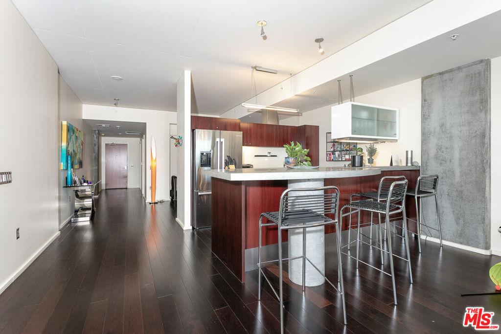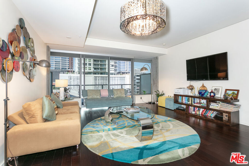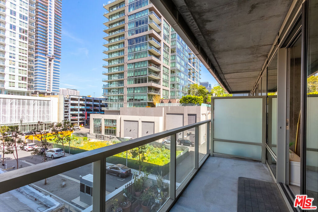 LA urban living at its finest! Experience LEED CERTIFIED "Evo", Downtown LA's most impressive Luxury "Green" Condo High Rises! Unit #416 offers a large footprint at 1,020sf boasting a west-facing wall of floor-to-ceiling windows where dual pane sliding glass doors access a RARE FULL SIZED, 12'x4' PRIVATE TERRACE giving you that highly sought after outdoor space in the middle of Downtown (ONLY CONDO FOR SALE IN BLDG AT LIST DATE UNDER $850K WITH FULL SIZED "WALK-OUT" BALCONY) welcoming you with big-city views of the South Parks Luxury high-rise corridor. The terrace extends the living space allowing its owner to walk out for fresh air & a nap, coffee with breakfast, drinks with friends, romantic dinners, and even doggie breaks! Exposed concrete makes Evo's "soft loft" a desirable lifestyle, perfectly mixing urban elements with contemporary design. Rich espresso hardwood floors throughout, only to be interrupted by black stone slate in the bright oversized bathroom. A huge laundry room at the entrance gives the homeowner a dedicated space for clothes and storage. A separate bedroom with the potential to enclose with a solid wall or even popular smoked sliders (see photo). Chefs kitchen "with a view", island & bar-stools. Assigned and deeded parking space. Soaring 23 stories above DTLA's exclusive South Park District where walkability is king. The renowned amenity package features stunning, west-facing ocean views (clear days) from its advanced rooftop fitness center and powerful north-facing skyline & jet-liner views from its rooftop lounge complete with outdoor seating & fireplace! A must-see, resort-style 6th-floor sun deck with pool, spa, entertainment & BBQ area. The reputation of Evo's top-notch, 24 hr security team and front door concierge staff along with the walkability of South Park have been well documented. LA Live, The "Crypt", Ralphs, Wholefoods, CVS, Ace Theatre, and far too many cool trendy lounges, restaurants, and bars to mention, after all, its South Park!!