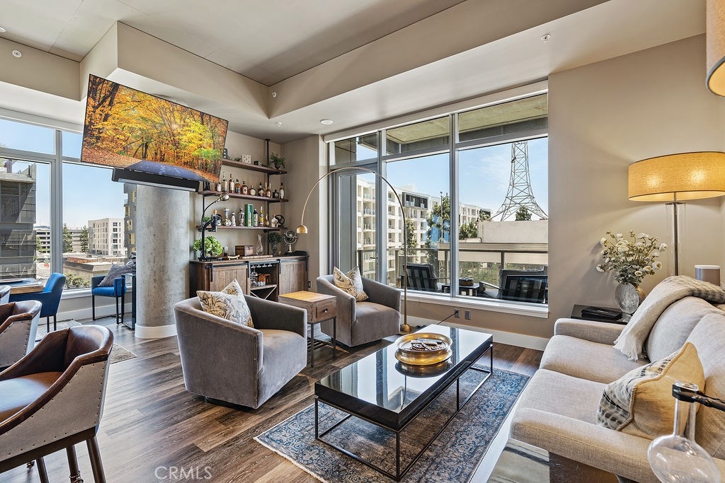 This beautiful large 1 bedroom 1.5 bath loft at Evo is located in one of Downtown LA's most prestigious zip codes. Come enjoy this southeast facing corner unit with lots of windows and natural light offering great city views! Open floor plan with large enclosed master bedroom, walk in closet, in unit washer & dryer, and new vinyl wood plank floors. Ultra-chic state of the art kitchen which includes Bosch stainless steel appliances as well as high end finishes. Both bath vanities were recently updated, new chandeliers, new bathroom lighting and new over sized bathroom mirrors. Relax and unwind after a hard days work on the large balcony and enjoy the city views. Evo boasts one of the greatest community amenities package in Downtown LA. Facilities include: pool with sundeck, spa, bbq, penthouse level fitness center, residents lounge, 24/7 security, concierge, and bell service. Evo is just minutes to LA Live, Staple Center, Whole Foods, The Bloc and more.
