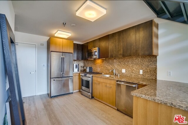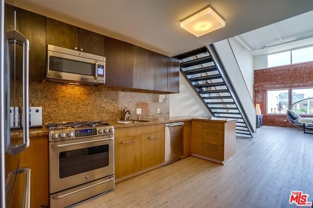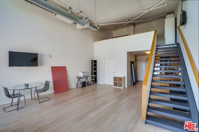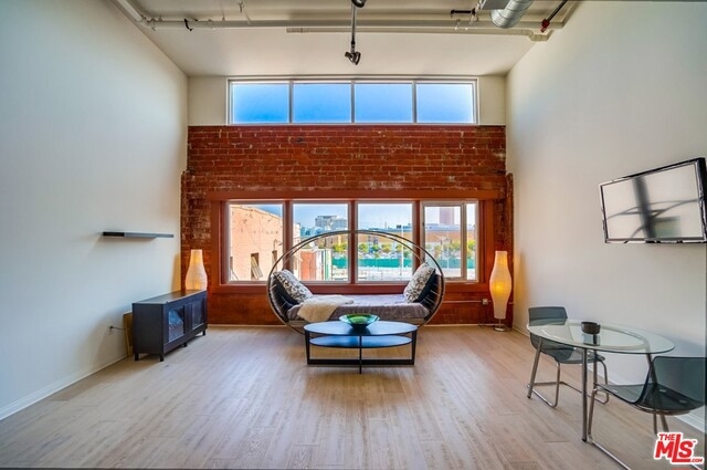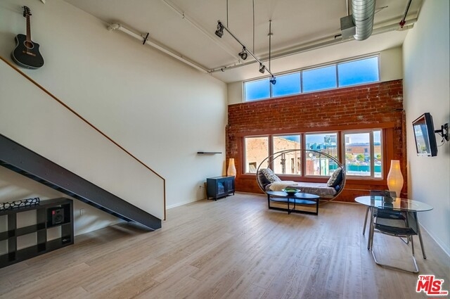 Right in the middle of everything cool in the Arts District you'll find this modern industrial boutique complex, the Gallery Lofts. In this airy spacious unit there is an abundance of natural light, floor to ceiling windows, an exposed brick wall, open kitchen, artistically etched hardwood floors and soaring ceilings. With gated parking, in unit laundry hook ups and low HOA's what more could you ask for!