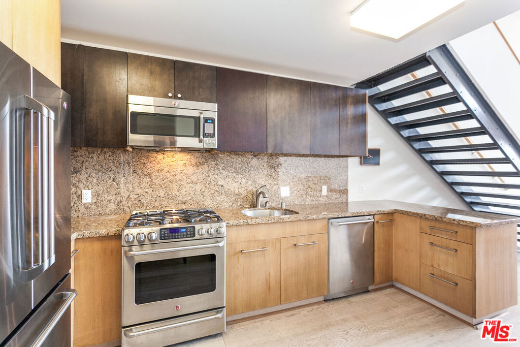 Once a warehouse in the 1920's, the Gallery Lofts have been transformed into a chic, architectural live/work space in one of downtowns most vibrant and dynamic neighborhoods. With soaring ceilings, oversized windows, and exposed brick walls, this spacious, light-filled unit inspires creativity from the moment you walk through the door. Perched above the living space, the mezzanine bedroom showcases distant city and mountain views and has a custom closet with lots of storage space. The modern kitchen has been elegantly designed with granite countertops, stainless steel appliances, ample cabinet space and a washer/dryer neatly tucked away. Located at the border of the Arts District and Little Tokyo, some of the best bars and restaurants in the city- Manuela, Bavel, Sushi Gen, Death & Co., and Angel City Brewery- are literally outside your door. For fans of contemporary art, Hauser & Wirth and the Geffen Contemporary at MOCA are just a short stroll away. One parking space is included and the HOA dues are low. If you're looking for an inspiring living space close to an exciting cultural center, this is the place for you.