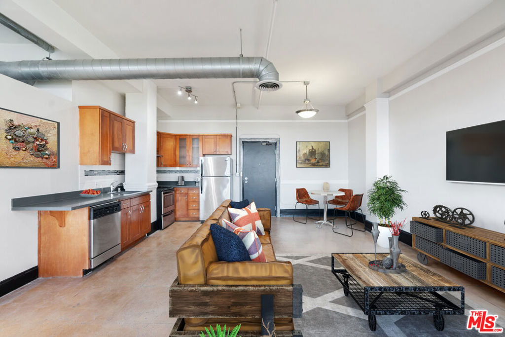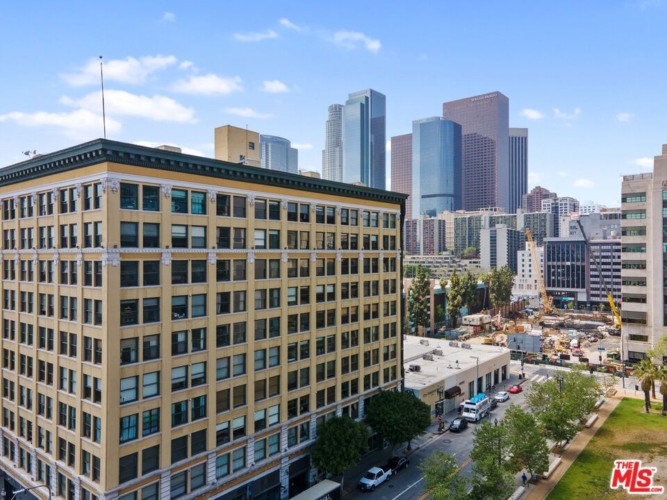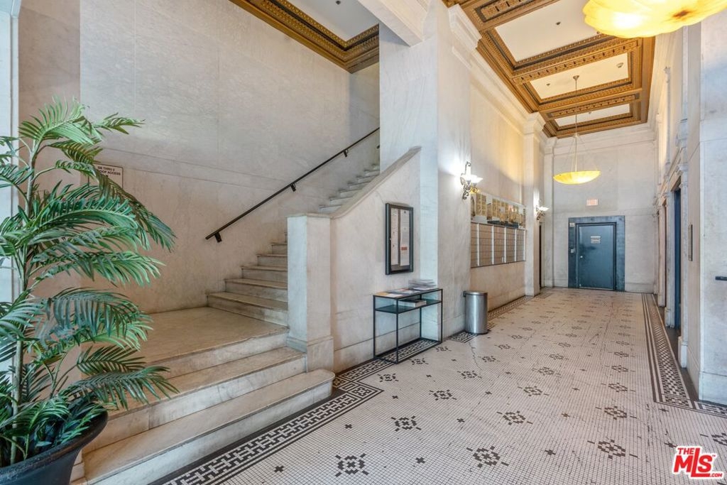 3D Tour: bit.ly/Higgins-703 Gorgeous East-facing home overlooking St. Vibiana and Little Tokyo in the historic Higgins building. Situated on the 7th floor, enjoy a birds-eye view of popular landmarks while soaking in radiant sunlight through a row of extra wide double-hung windows highlighting the open loft layout and spacious floorplan. The kitchen features a modern quartz countertop with a subway tile backsplash, stainless-steel appliances, and shaker style cabinets. Tucked away in the back, delight in a private bedroom space with two large wardrobe cabinets and amazing views. Built in 1910 as an office building and transformed into residences nearly 2decades ago, The Higgins displays many prominent original details including the beautifully laid mosaic tiles, stunning marble staircases with iron-worked handrails, and exquisite iron-caged elevators. Designated as a Mills Act building, homeowners receive a property tax savings of up to 70% off. Residents can enjoy an array of amenities including a rooftop sundeck with 360 degree views, BBQ, garden pavilion, and on-site security & concierge. Conveniently located near several destination spots including Walt Disney Concert Hall, The Broad, Grand Central Market, soon to finish Metro station, and the newest upcoming Frank Gehry building, The Grand.