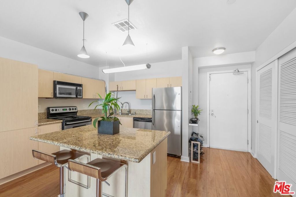 3D Tour: bit.ly/LibraryCourt-403 Marvelous 1-bedroom condo at the center of Financial District in Downtown LA. This stunning home features a large inviting living room highlighting a floor-to-ceiling picture window, high ceilings, and updated wood floors all around. Prepare unforgettable meals in the stunning kitchen showcasing gorgeous granite countertops, an abundance of cabinet storage, sleek stainless-steel appliances, and a massive kitchen island many would wish for. In the bedroom, delight in lush carpeting and frosted floor-to-ceiling windows with city views, while in the spacious bathroom enjoy a charming soaking tub and extra storage. Included with the home is a stacked washer and dryer along with 1 assigned underground parking space. As a member of the Library Court community, residents experience a handful of building amenities ranging from the Zen bamboo garden, remodeled fitness center, business lounge, game room, and 24-hour security & concierge. Conveniently located near the LA Central Library, Metro lines, FIGat7th, Pershing Square, and several more popular destinations!
