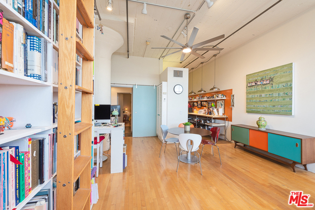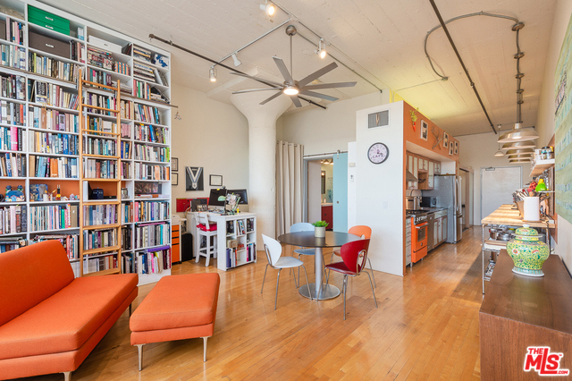 A loft fit for foodies and booklovers in DTLA's Little Tokyo Lofts inspires creativity and cozy living. Authentic steel-encased windows fill the space w/ natural light, showcasing its 12' volume ceilings, original columns, wood floors and custom wall-to-wall bookcase. Modern upgrades include Sliding Door Company bedroom doors, chef's kitchen w/ Bertazzoni 30" Drop-in range, Kitchen Aid dishwasher and expansive counter space w/ storage. A remodeled bath offers subway-tiled shower walls, designer vanity, Kohler fixtures and Whirlpool Duet Deluxe washer & dryer. Little Tokyo Lofts was converted to residences in 2006 from its Westinghouse Electric Company 1920's origins. Residents now enjoy amenities including a sun deck w/ swimmers pool, spa, BBQ, an interior courtyard, a dog run, 24-hour guarded entry and guest parking. 2 assigned and covered parking spaces are included. Explore DTLA's Little Tokyo, Arts, Fashion and Flower Districts from this central location.