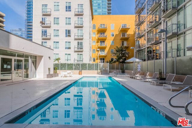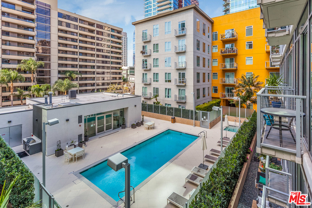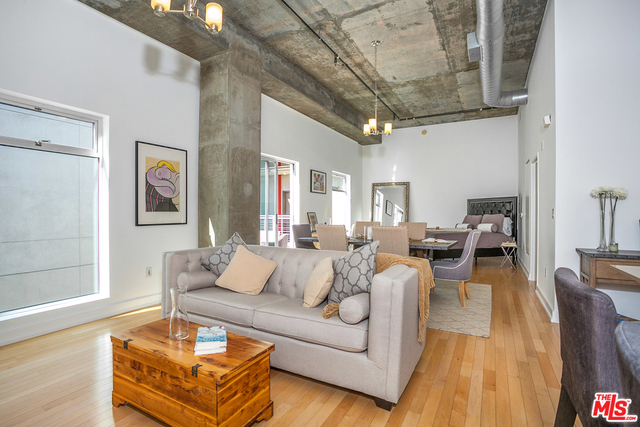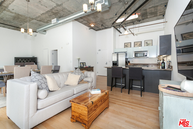 This fantastic penthouse residence at Market Lofts boasts ceiling heights of over 12-feet (exclusive to the penthouse level), hardwood floors, and exposed concrete walls, posts and ceilings. This west-facing unit basks in natural light and fresh air courtesy of it's wall of windows, and a large balcony, ideal for al-fresco dining while enjoying the cityscape and kaleidoscope of colors of a sun-setting sky. The open and modern kitchen features European cabinetry, stainless steel appliances, and quartz countertops The unit is grand and open, however a private bedroom can easily be created with the mere addition of a dividing wall. The bathroom features a large tub/shower and a huge walk-in closet. Completing this urban oasis is an in-unit washer/dryer and reserved parking space. Amenities include a pool, spa, fitness center, media room, resident's lounge, and 24-hour security. At the center of South Park, atop Ralphs and blocks from Whole Foods and upcoming Apple and Erewhon stores.