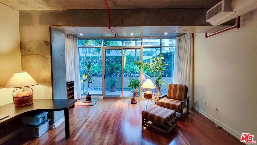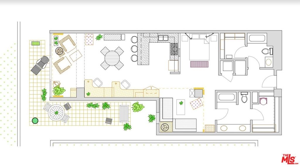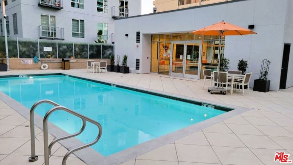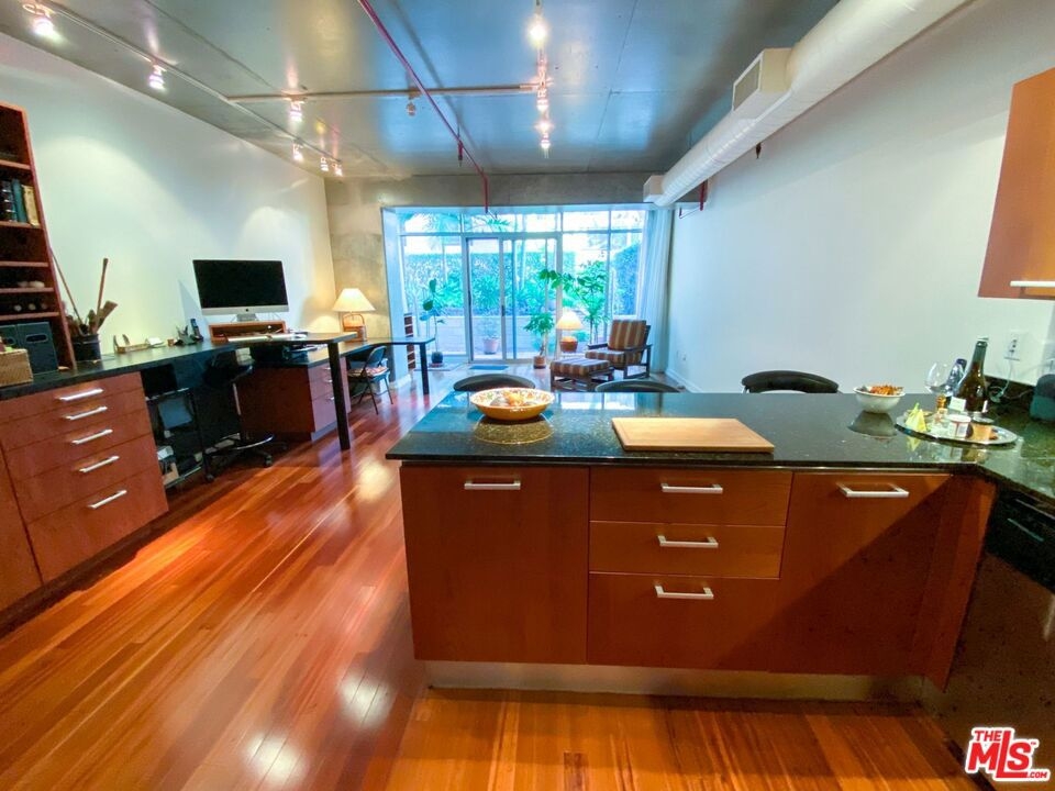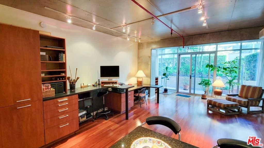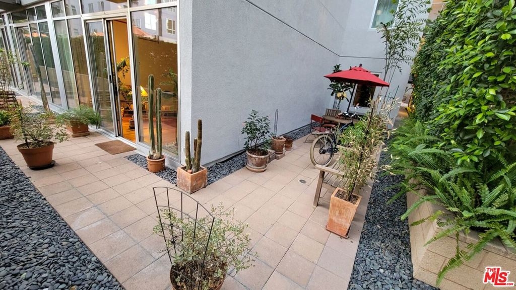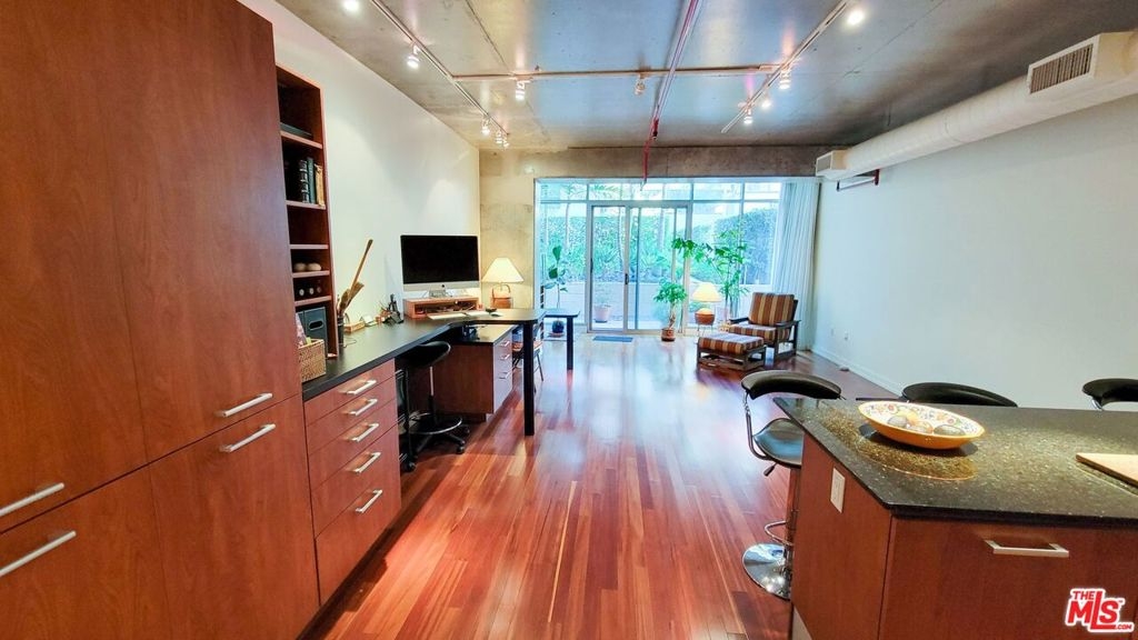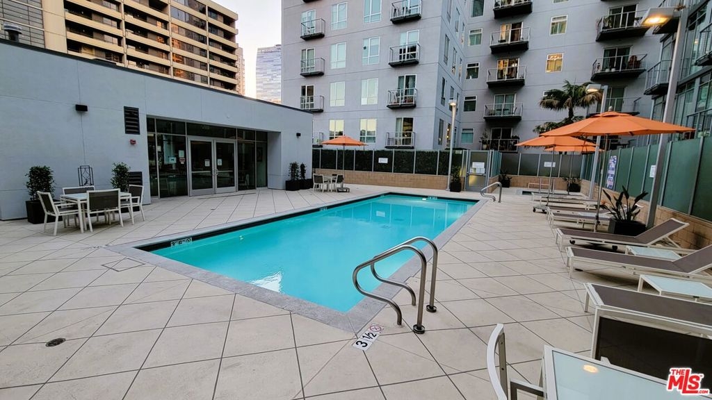 Wow! Look at this amazing patio!! This Market Loft home comes with one of the largest outdoor spaces in the building. 2+2+2 !! This meticulous Live/Work loft provides two-bedroom areas along with two walk-in closets and two full baths. This is an open concept loft, however the bedrooms can be designed for privacy. Design details include custom lighting, built-ins, wall and window treatments, along with closet buildouts. Modern kitchen with Caesarstone countertops, backsplash, and stainless-steel appliances. In-unit laundry with stackable Bosch washer and dryer and one reserved parking space in the attached garage. There are also additional parking spaces available for rent. Only one common wall and on the same floor you will find resort style amenities including a pool, spa, clubhouse with kitchen, BBQ, fitness center and a private screening room. This means there are no elevators involved when using the amenities, just walk outside your door. Market Lofts is all about its vibrant and accessible location! Above Ralph's Grocery store and in the heart of all that makes Downtown enjoyable!