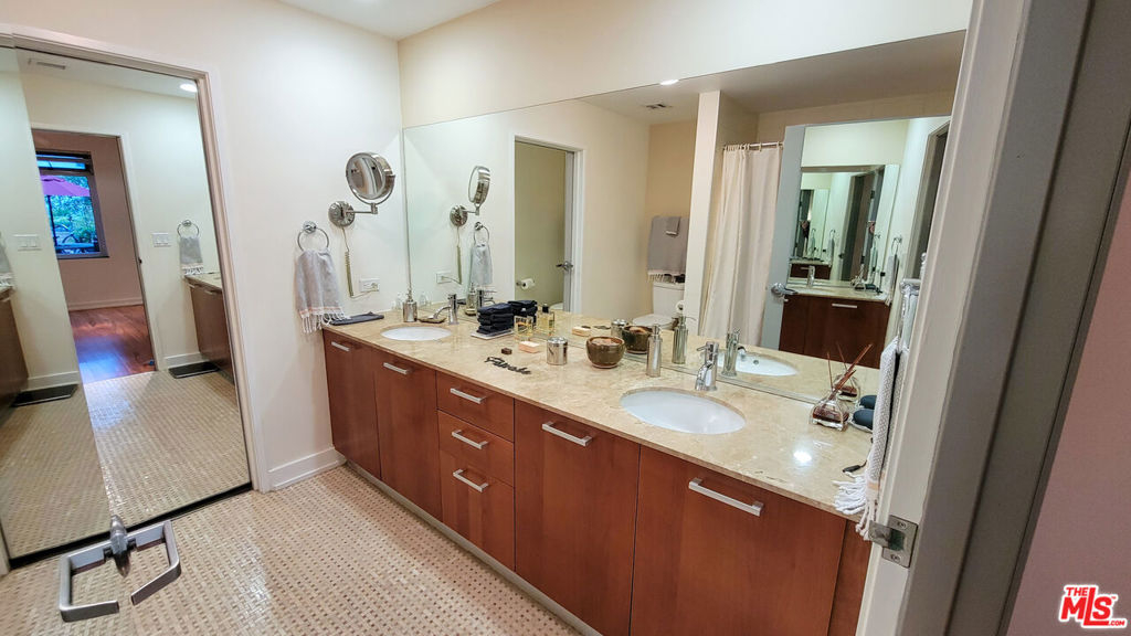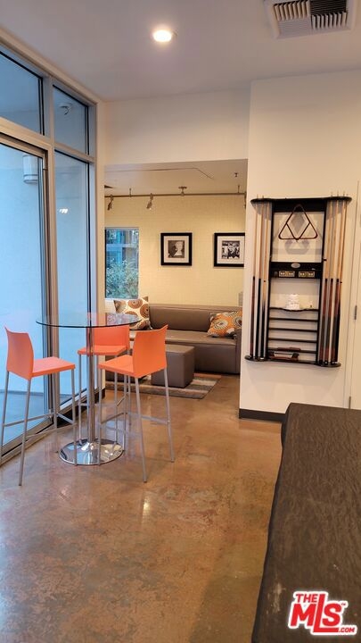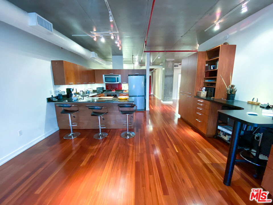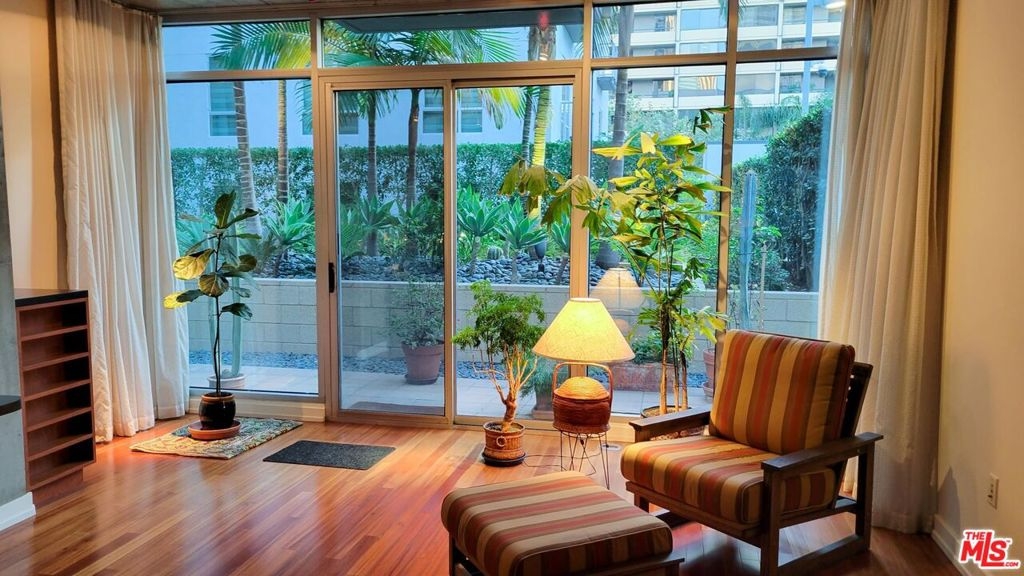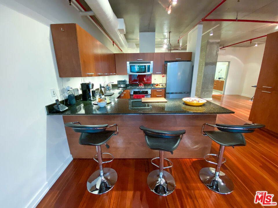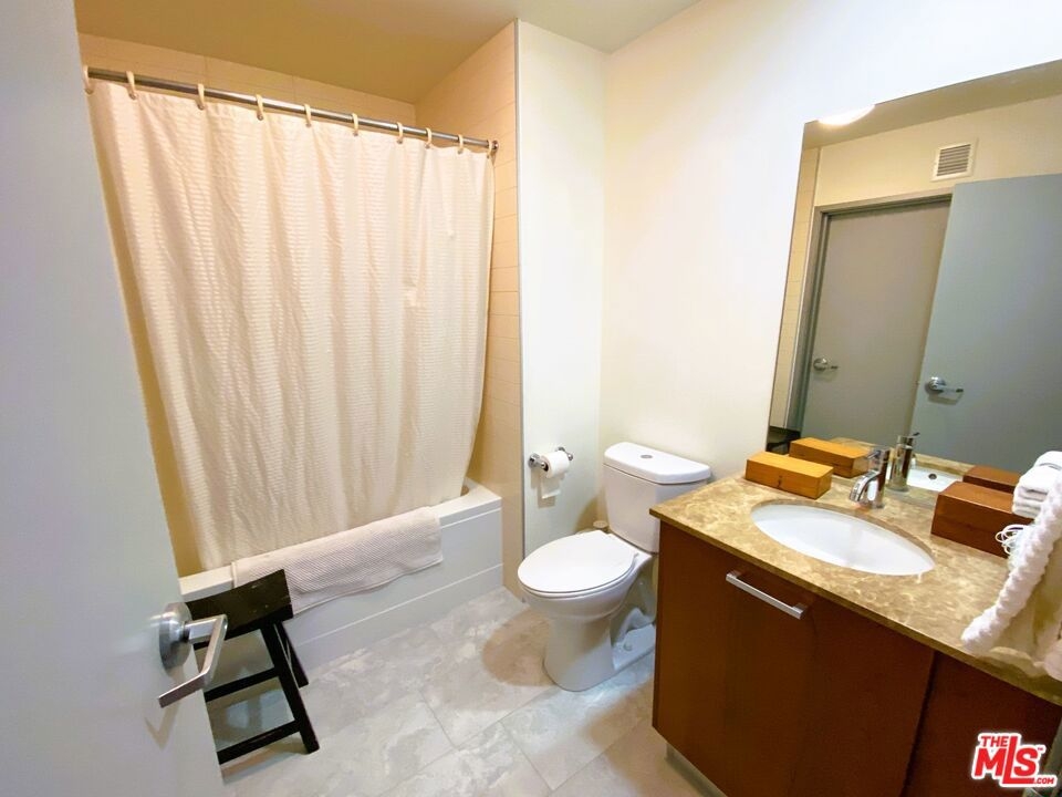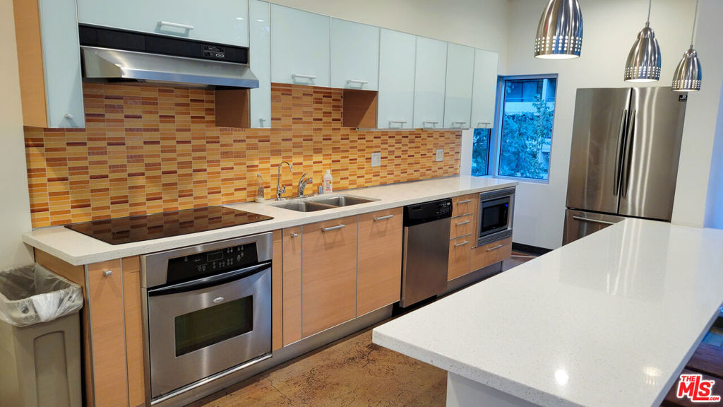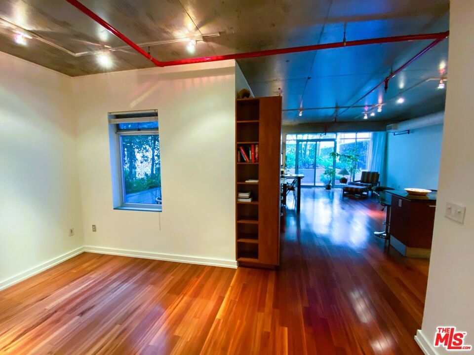 Wow! Look at this amazing patio!! This Market Loft home comes with one of the largest outdoor spaces in the building. 2+2+2 !! This meticulous Live/Work loft provides two-bedroom areas along with two walk-in closets and two full baths. This is an open concept loft, however the bedrooms can be designed for privacy. Design details include custom lighting, built-ins, wall and window treatments, along with closet buildouts. Modern kitchen with Caesarstone countertops, backsplash, and stainless-steel appliances. In-unit laundry with stackable Bosch washer and dryer and one reserved parking space in the attached garage. There are also additional parking spaces available for rent. Only one common wall and on the same floor you will find resort style amenities including a pool, spa, clubhouse with kitchen, BBQ, fitness center and a private screening room. This means there are no elevators involved when using the amenities, just walk outside your door. Market Lofts is all about its vibrant and accessible location! Above Ralph's Grocery store and in the heart of all that makes Downtown enjoyable!
