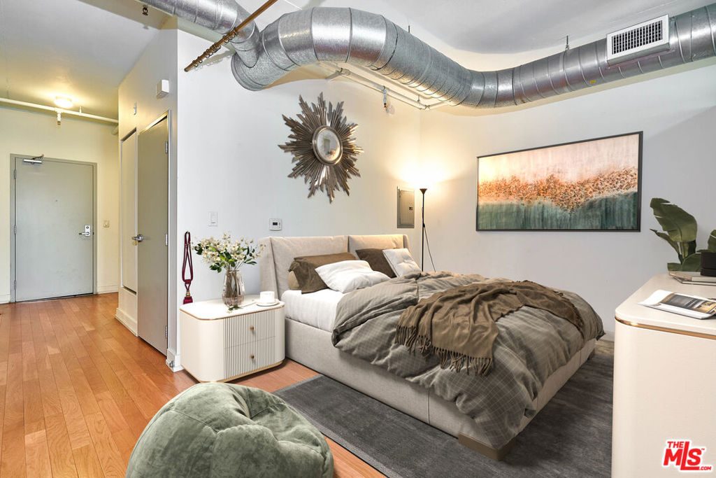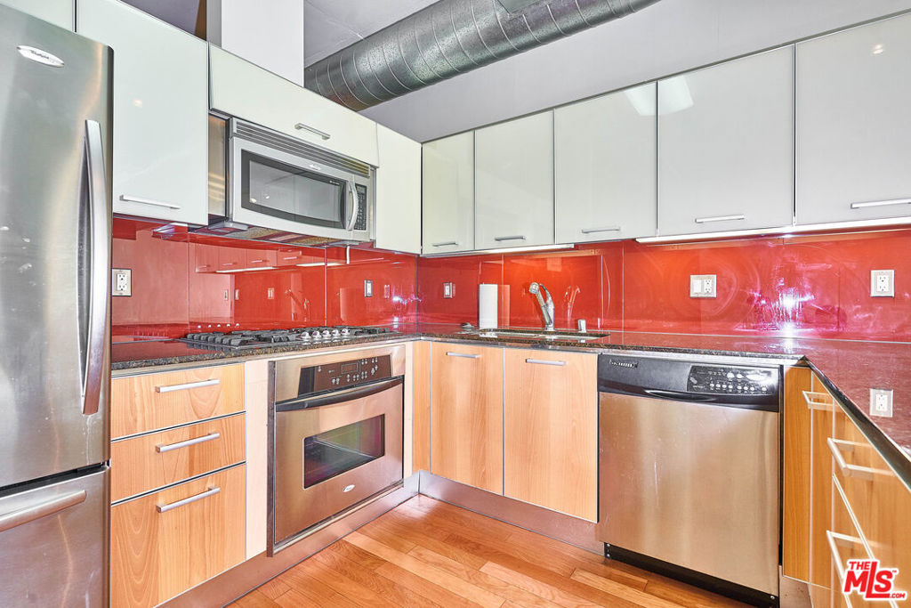 Modern style Market Lofts residences are located in the heart of LA DownTown South Park. Open floor plan with 2 Bedroom areas, 2 full baths and 2 walk-in closets with organizers. Hardwood floors, high ceiling, gourmet kitchen with stainless steel appliances and all in one W/D in unit. Luxury amenities includes 24-hr security, pool, spa, BBQ grill, clubhouse with kitchen, media room, fitness center. South facing pool view from balcony. The units are located above Ralph's Market. Walking distance to Whole Foods, shopping, restaurants, FIDM, Staples Center. 2.5 miles from USC. ***TWO SIDE BY SIDE PARKING SPACES RESERVED but not PURCHASED . $231.39 x 2 (parking)=$462.78, $125.94 (parking maint), HOA $476.81 TOTAL $1,065.53/month. Water and Gas are included in HOA Due.