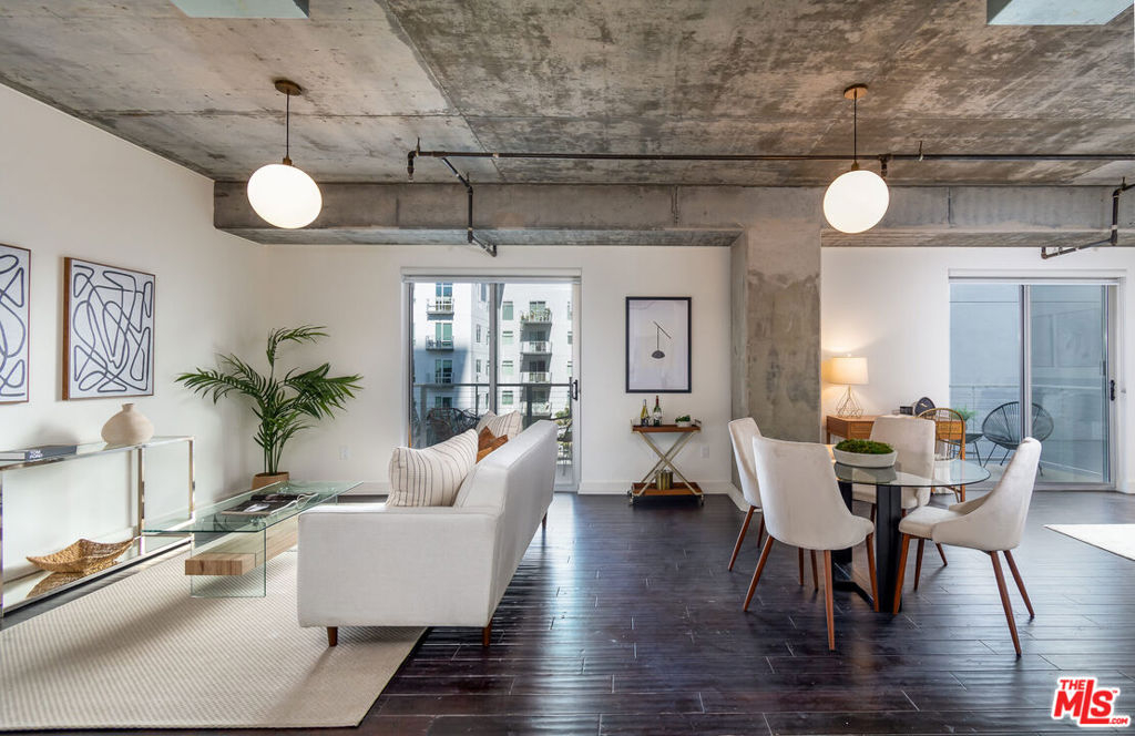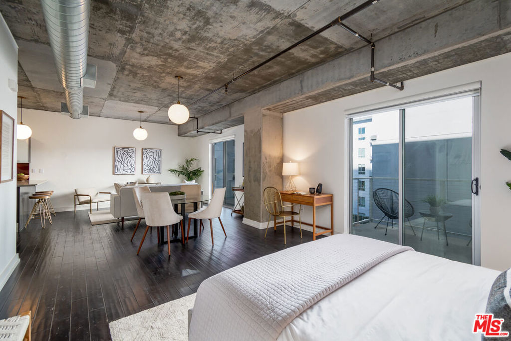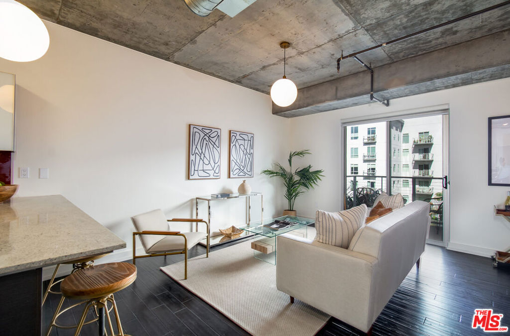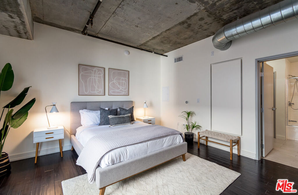Welcome home! This loft has it all A spacious open floor plan with exposed concrete walls, hardwood floors, a walk-in closet, an in-unit washer & dryer, and two separate terrific patios for enhanced indoor/outdoor loft living. 2017 upgrades include a bathroom remodel with new floors, cast iron tub, Kohler fixtures, Toto toilet with hookup for bidet, stone countertop, and lighting. A black matte Bosch dishwasher and microwave were added to the kitchen area and custom window coverings on both balconies. Market Lofts is in the heart of the South Park neighborhood which is within walking distance of the best of DTLA... LA Live, Staple Center, FIDM, Hope Street Park, Wholefoods, Ralphs, Macy Bloc, 7th & Fig, Metro, cool restaurants, and bars, museums, and more! Resort-style amenities include a pool & spa, clubhouse, fitness center, screening room, amazon lockers, 24/7 front desk and security, and on-site management. Plugin and Play!