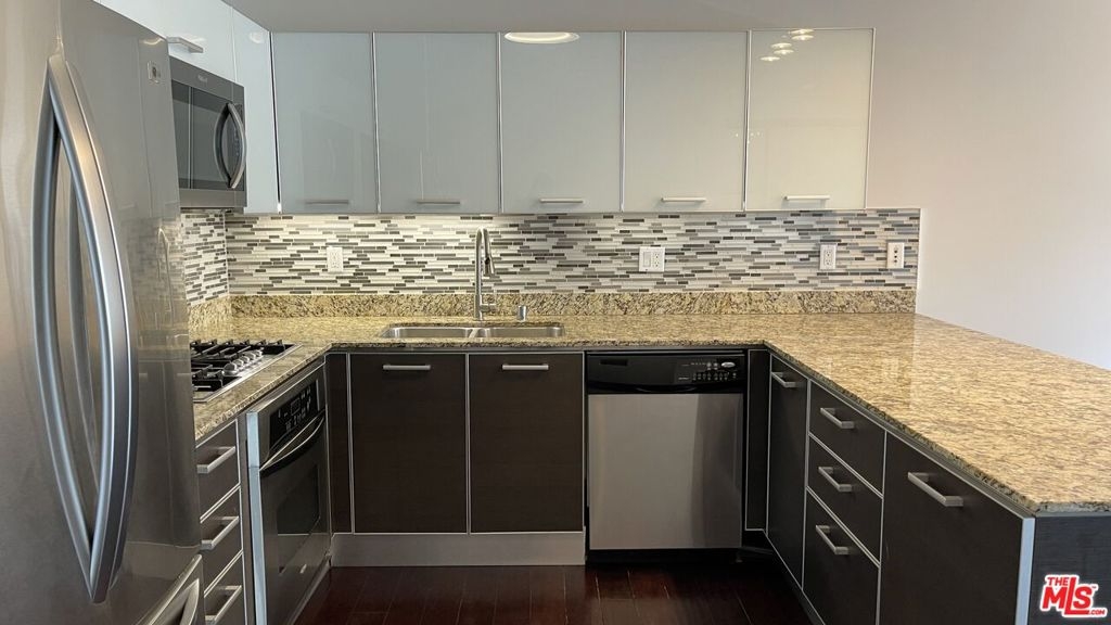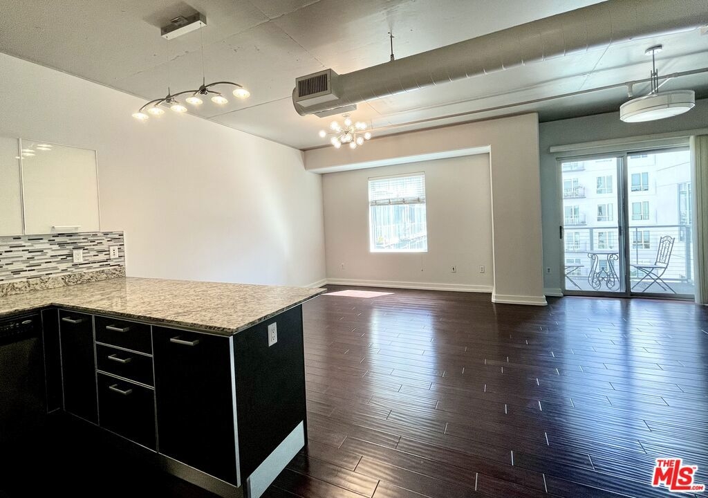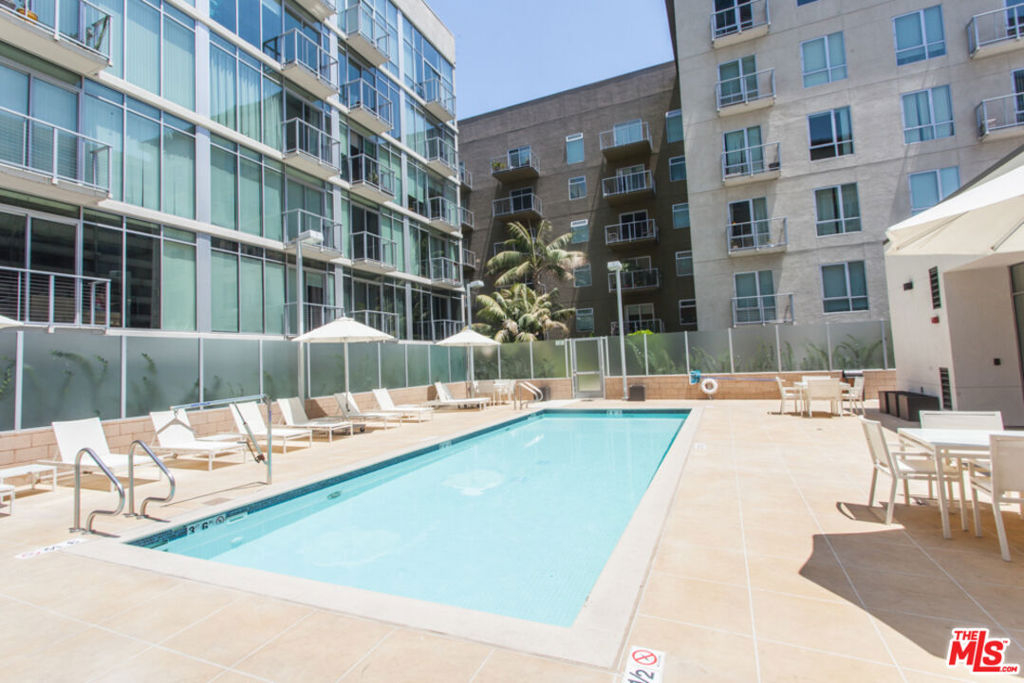 Located in the heart of vibrant South Park. Loft-style unit with roomy balcony overlooking the pool, chef's kitchen with breakfast bar, granite counters, stainless steel appliances, and large walk-in closet. Upgrades include hardwood floors, sliding doors that separate the bedroom area from the living area, and mid-century modern chandeliers. Unit includes washer/ dryer and 1 gated, secured assigned parking spot. The Market Lofts are above Ralph's and within walking distance to Whole Foods, Petco, FIDM, LA Live, Staples Center, Target, Starbucks, etc. Building amenities include 24/7 security, gym, pool, BBQ grill, club house with pool table and gourmet kitchen, and screening room.