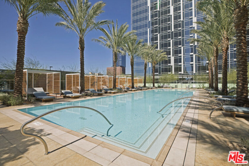 This expertly configured studio home features a thoughtful open design with a seamless, modern kitchen, walk-in closet and towering window walls. A place to play up your culinary skills, host, or even savor take-out from the acclaimed restaurants that surround, the kitchen is outfitted with sleek Caesarstone countertops, custom made Italian cabinetry with under cabinet LED lighting and integrated Bosch appliances.The bathroom includes a custom-designed vanity, Hansgrohe & Duravit Bath Fixtures, and a large soaking tub with stone surround, to create a luxurious setting for relaxing at the end of the day with a little bubbly.