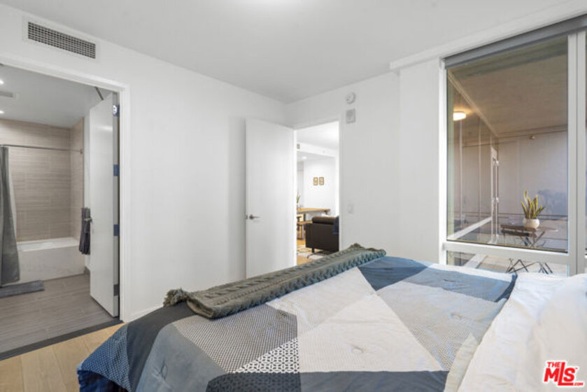 NEWER LUXURY CONDO, RARE UNIT WITH BALCONY - It's one of the very few units at this building with a balcony and with these views, it's definitely a special one. Ideally facing west to capture stunning sunset views and a gorgeous cityscape, Residence 1116 at the popular Metropolis II Towers offers an exceptional living experience. As one of the most magnificent high-rise condominium buildings in Los Angeles, this residence welcomes you with guarded security and an impressive lobby featuring soaring ceilings, attentive concierge service, and sophisticated finishes that set the tone for this urban oasis. Upon entering Residence 1116, you're immediately greeted by breathtaking west-facing views that flood the space with natural light. A convenient coat closet and powder room lead you into a beautifully designed open-concept kitchen, dining, and living area, perfect for today's most discerning buyer who values seamless entertaining and modern living. Step onto your private terrace off the living room and immerse yourself in panoramic city views while savoring your morning coffee or evening wine. This is your personal retreat above it all. The generously sized bedroom features two thoughtfully designed closets: a walk-in and an organized shoe closet with shelving. The luxurious ensuite bathroom showcases elegant stonework surrounding the tub and a sleek floating vanity, creating a spa-like atmosphere. At just under 1,000 square feet, this condominium delivers the perfect balance of luxury and livability. To add, there is great closet space in this particular plan and that is an important item for many. There is a double door coat closet in the entry, there's a storage closet in the living room, two closets in the bedroom, and there's another storage closet in the powder room. The building's exceptional amenities elevate your lifestyle with a sophisticated club room, billiard room, business center, fitness facility, resident lounge, and locker rooms complete with steam room. The outdoor amenities are truly spectacular: a stunning glass-walled outdoor kitchen, resort-style pool, hot tub positioned to capture those mesmerizing west-facing city views, dog park, children's playground, beautifully landscaped park areas, and inviting sitting spaces throughout. This is truly a place you'll be proud to call home. The location is unbeatable as you'll be surrounded by incredible dining destinations including the new Javier's and Mastro's, with convenient access to Whole Foods and the highly anticipated Erewhon Market opening in 2027. Cultural attractions like the renowned MOCA, The Broad, and Walt Disney Concert Hall are just moments away. Make your appointment today. This exceptional residence won't last long.