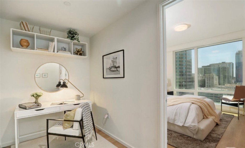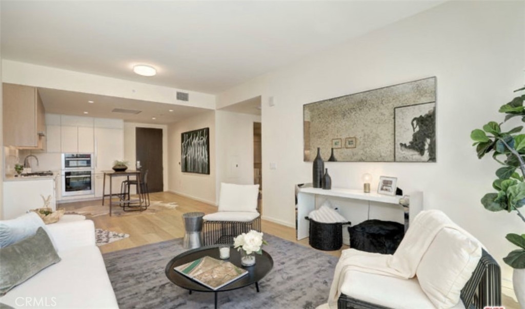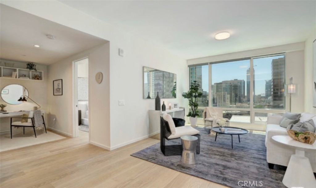 Far-reaching city and hillside views are framed by floor-to-ceiling windows in Residence 1507, perched on the 15th floor of Tower II at Metropolis. The one-bedroom, one-bath home features an open-concept great room with soaring ceilings and an effortless flow between living, dining and cooking spaces. The chef-caliber kitchen features seamless modern design, Caesarstone countertops, custom wood cabinetry and Miele & Bosch appliances. The master bedroom features east-facing sunrise views and multiple closet spaces. Additional contemporary details include six-inch-wide oak flooring, Nest Learning Thermostats and built-in power window shades. Residents of Metropolis enjoy 24/7 lobby attendant, concierge, residence clubhouse, resort-style pool, fitness & yoga studio, sky garden, billiard, game & screening rooms, putting green, children's playground and dog park. Metropolis is home to three residential towers, the boutique Hotel Indigo and expansive retail spaces in the heart of DTLA.