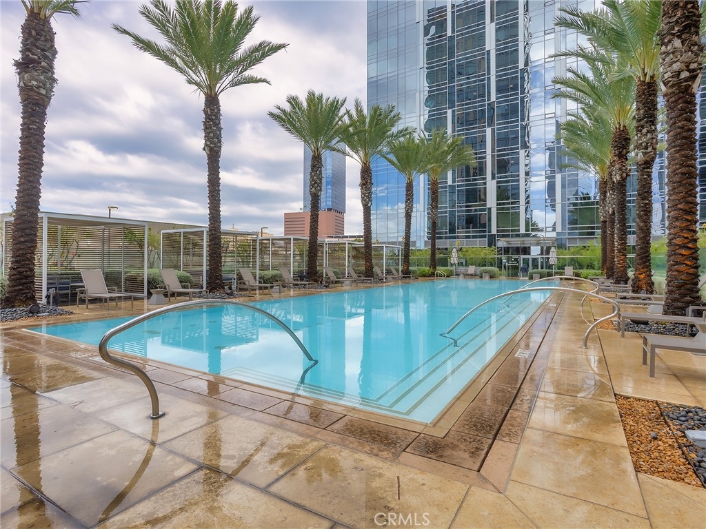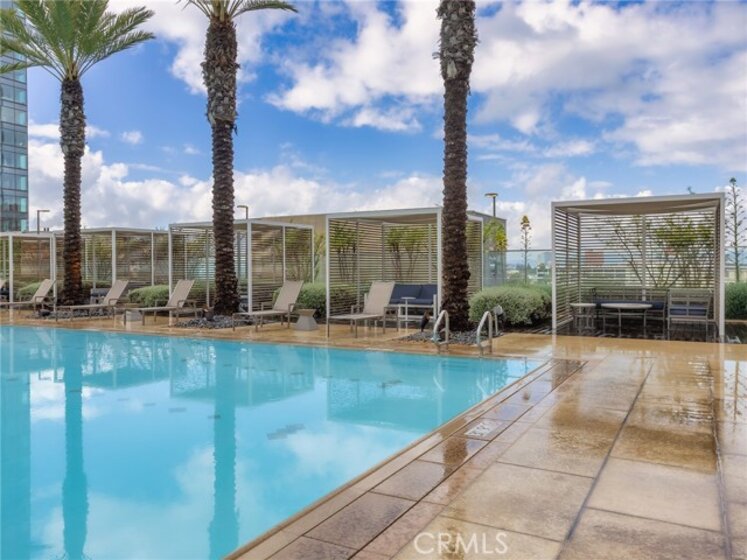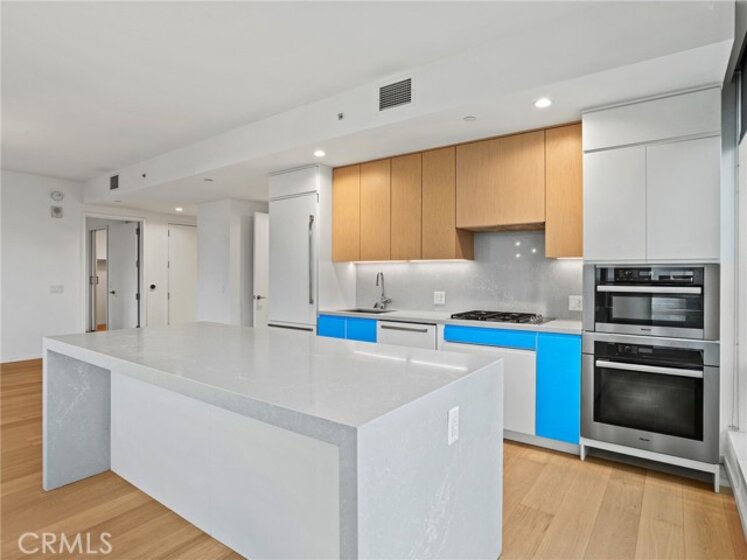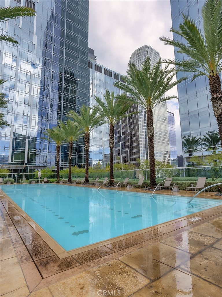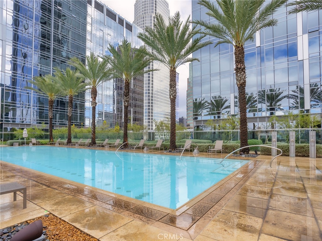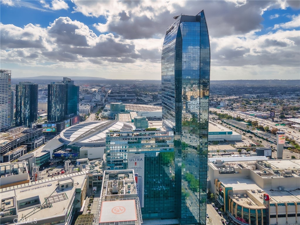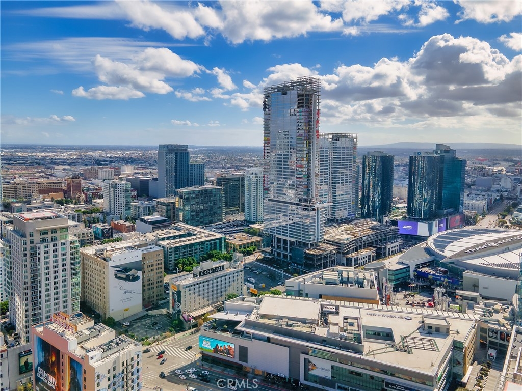 Perched on the 41st floor, this spectacular end-unit residence offers 1,310 square feet of refined living space with 2 bedrooms and 2 bathrooms in a premier luxury high-rise designed by Gensler. A formal entryway welcomes you into a stunning showplace defined by soaring high ceilings and dramatic floor-to-ceiling windows that frame truly breathtaking panoramic views. From sunrise to glittering city nights, enjoy sweeping vistas stretching as far as the LA Harbor, the iconic Hollywood Sign, surrounding mountains, and shimmering city lights. The thoughtfully designed floor plan features a spacious living area that flows seamlessly into a formal dining area, perfect for entertaining and elevated downtown living. The gourmet kitchen is beautifully appointed with a built-in refrigerator, stove, microwave, cooktop, wine refrigerator, expansive center island, and breakfast bar, offering both style and functionality. The spacious primary suite serves as a private retreat, complete with a generous walk-in closet and a well-appointed en-suite bath. A second bedroom and full bath provide comfort and flexibility for guests or a home office. A dedicated laundry area is conveniently located in the hallway. Central heat and air ensure year-round comfort. Experience true resort-style, luxury high-rise living with exceptional amenities including a 24/7 lobby attendant, concierge service, pool, spa, fitness center, putting green, and more. Ideally situated just two blocks from L.A. Live and Crypto.com Arena, you’ll enjoy immediate access to world-class entertainment, along with an abundance of renowned restaurants and vibrant shops right outside your door. This is downtown living at its finest, elevated, sophisticated, and unforgettable.