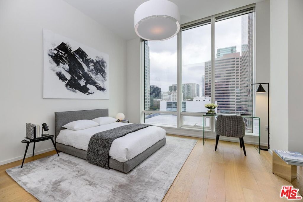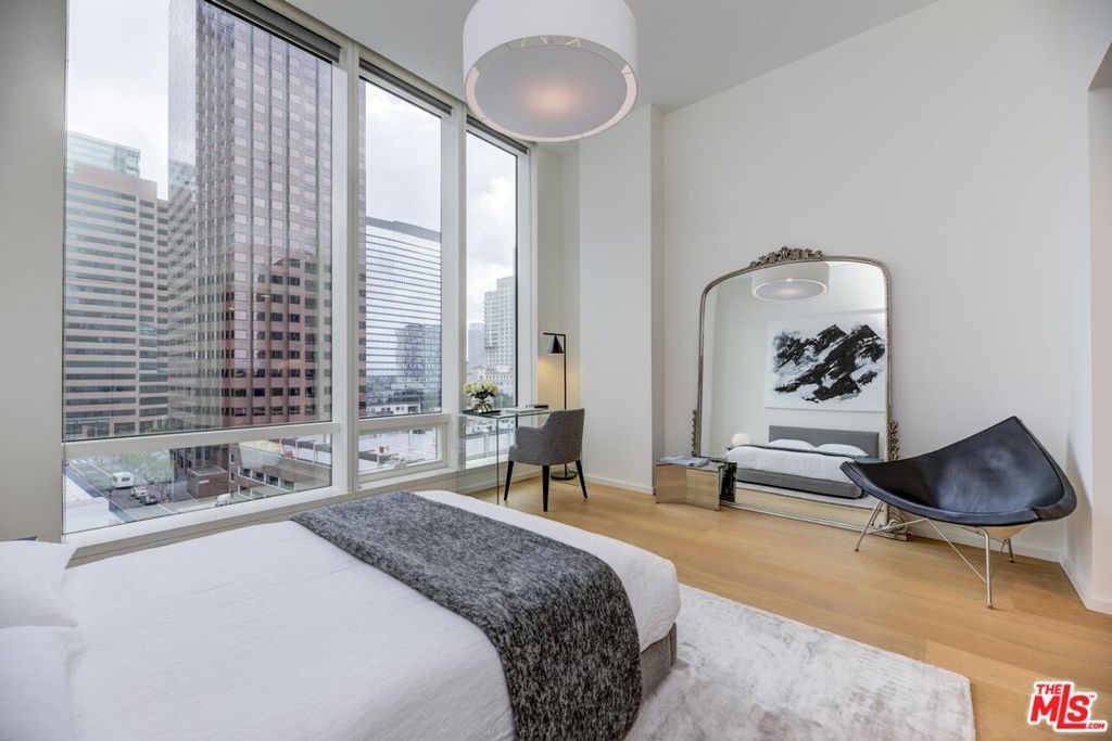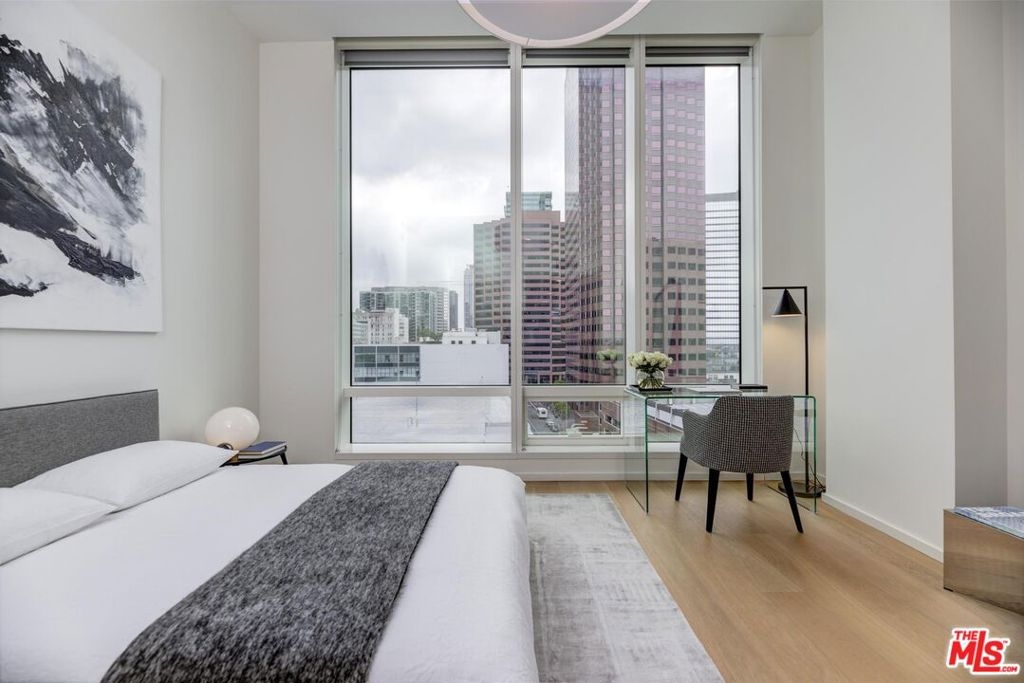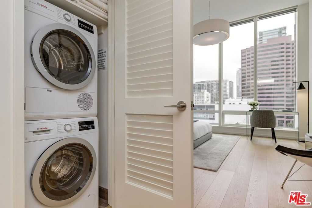 This spacious studio at Metropolis Tower II, is an urban sanctuary. With extra high ceilings, spacious open floor plan & expansive windows that frame the LA skyline. Thoughtful attention has been paid to every detail from flooring to designer finishes that define the finest in Luxury living! The well-appointed & modern kitchen includes appliances and pantry. Stackable washer & dryer in closet and sumptuous full bathroom with tile flooring. The 1.7 acres of indoor and outdoor amenities include the resort-style pool and spa with BBQ area, fitness center, mediation gardens, 24-hour lobby security services, dog park, easy access to the major freeway systems with restaurants, night life, marks and stores nearby make this home a must see! Gas, Water and Trash included. Charging station in garage and super charger next door.
