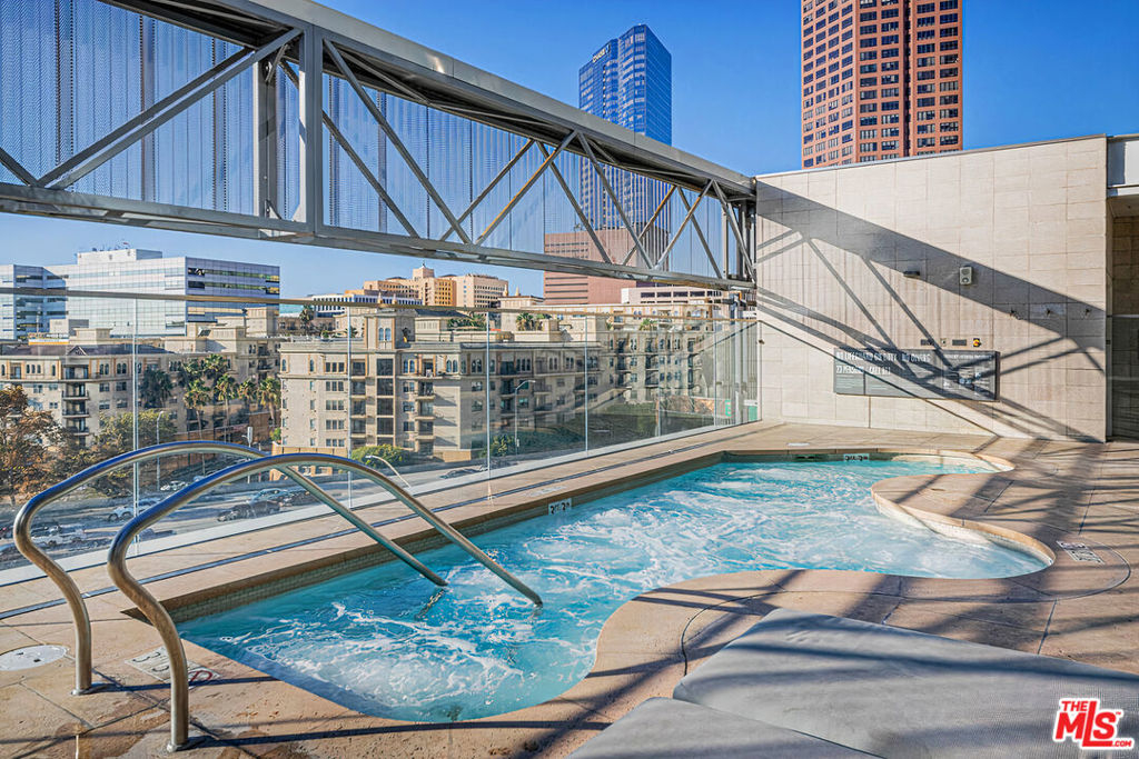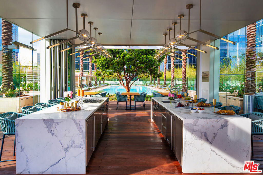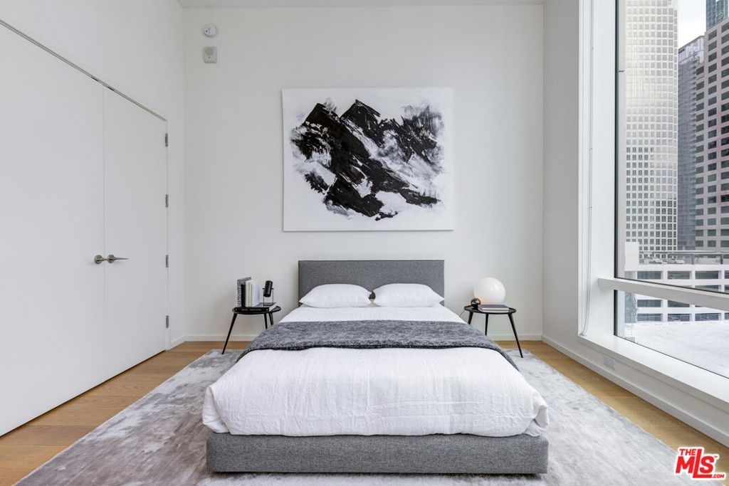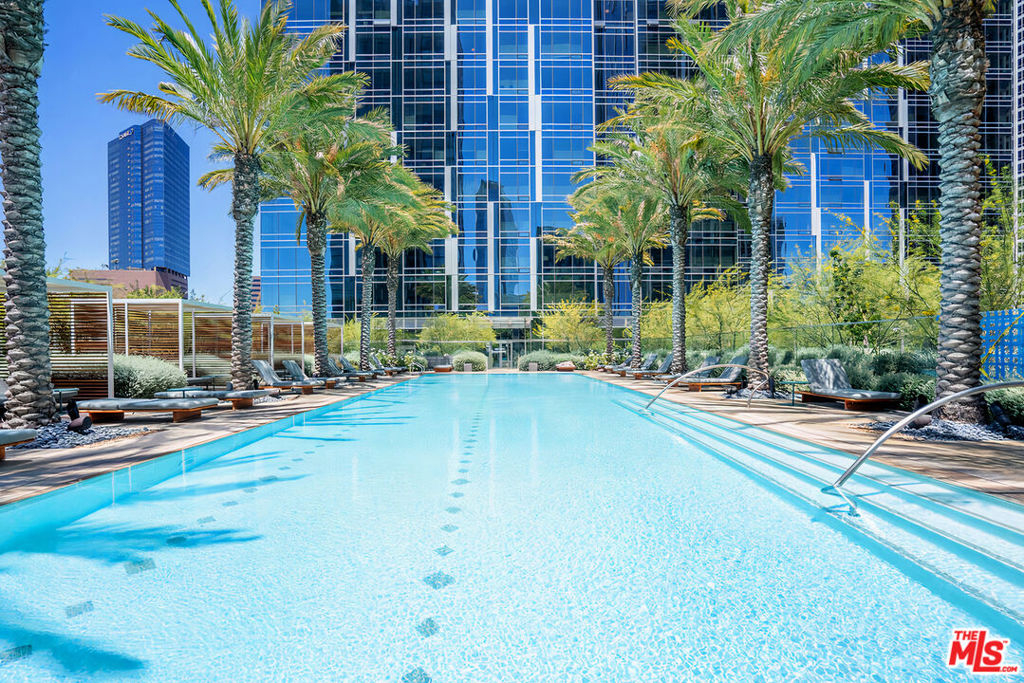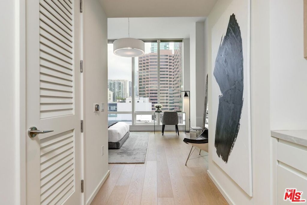 This spacious studio at Metropolis Tower II, is an urban sanctuary. With extra high ceilings, spacious open floor plan & expansive windows that frame the LA skyline. Thoughtful attention has been paid to every detail from flooring to designer finishes that define the finest in Luxury living! The well-appointed & modern kitchen includes appliances and pantry. Stackable washer & dryer in closet and sumptuous full bathroom with tile flooring. The 1.7 acres of indoor and outdoor amenities include the resort-style pool and spa with BBQ area, fitness center, mediation gardens, 24-hour lobby security services, dog park, easy access to the major freeway systems with restaurants, night life, marks and stores nearby make this home a must see! Gas, Water and Trash included. Charging station in garage and super charger next door.