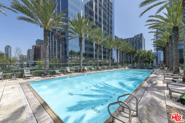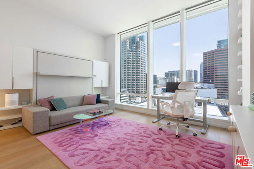 SELLER FINANCING AVAILABLE. BEST VALUE IN BUILDING. This is the most desirable Studio residence available in the Luxury Metropolis High Rise Tower II. This luxurious condo has the rare, extra high ceilings with floor to ceiling windows and is conveniently located on the 9th floor so you can walk out directly to the Skypark with resort style pool, spa, clubhouse, lounge, fitness center and yoga studio, sky garden, dog park, screening room and billiards room. This luxury condo has a thoughtful open floor plan, soaring ceilings and is flooded with natural light through the floor to ceiling windows. Additional lavish features are the seamless modern kitchen with Caesarstone countertops, custom wood cabinetry and Miele & Bosch appliances, wide oak flooring, spa-like bathroom with a soaking tub, washer/dryer and a fantastic custom-made space saving wall bed with integrated sofa (by Resource Space) which is included in the purchase. Enjoy special access to Hotel Indigo's dining and lounge which is located right next door. Situated in the heart of DTLA, this residence is conveniently located near entertainment venues, restaurants, fine dining establishments, and major freeways for easy commuting. Take advantage of this opportunity to own this urban sanctuary nestled in the vibrant heart of Los Angeles!