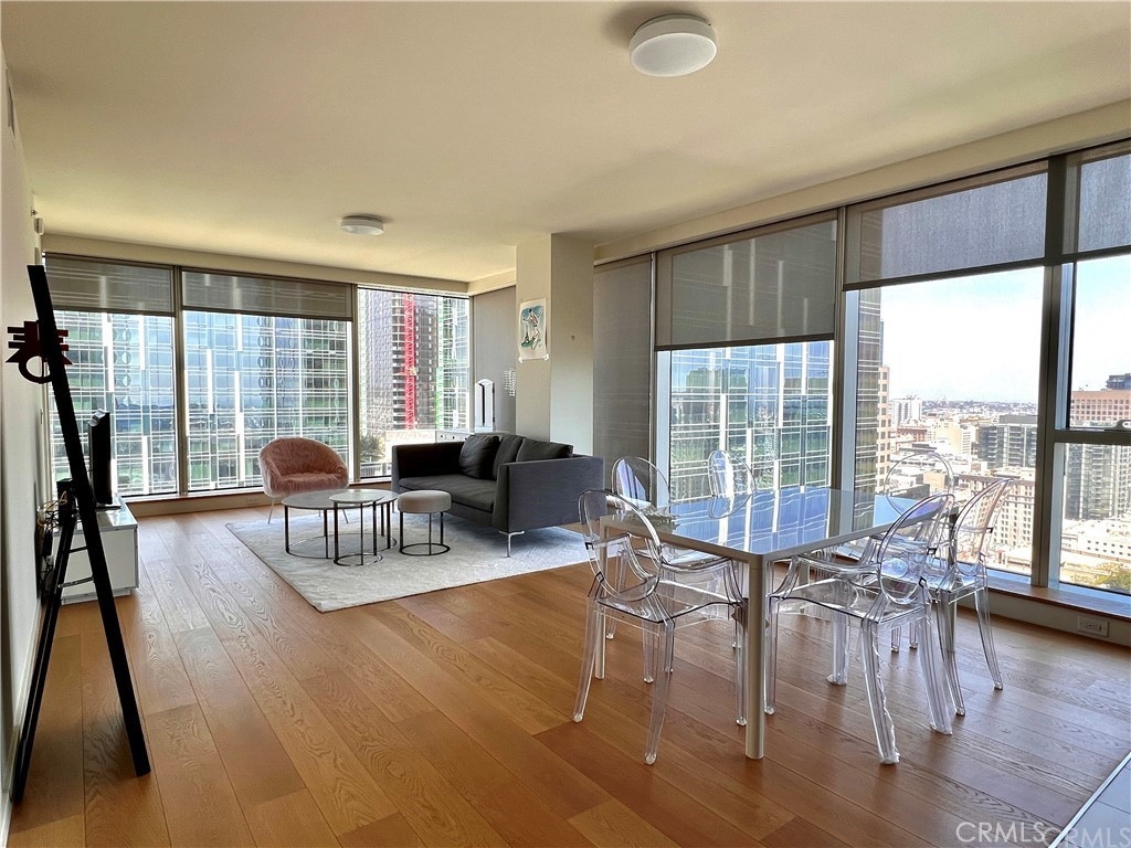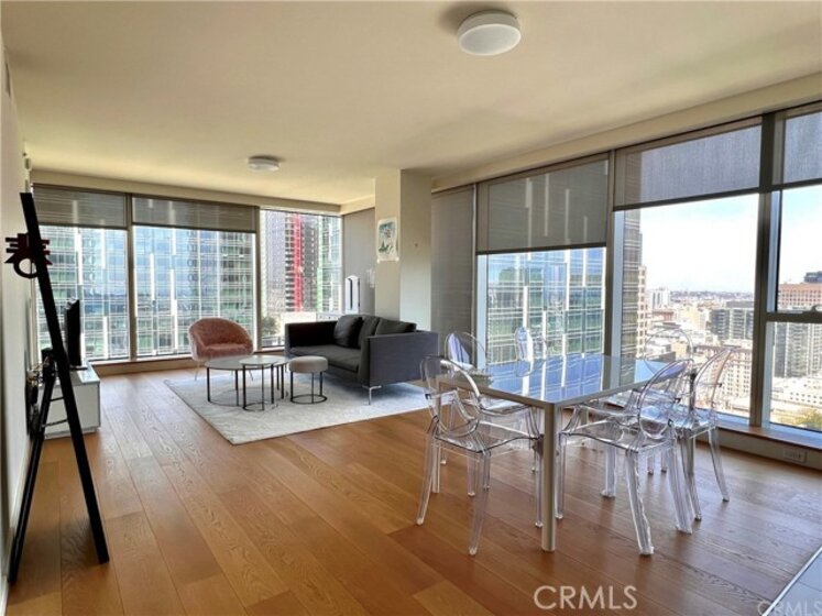 The BEST one-bedroom corner unit at Metropolis!! Wake up to the 180 degrees panoramic view of DTLA, Staples Center, and the mountains where you see the HOLLYWOOD sign and Griffith Observatory. Brand new automatic blinds for you to enjoy the view in just 1 click of the button. In this furnished 31st-floor unit, you wake up to tons of natural lights and fall asleep to the most beautiful city lights. World-class amenities right downstairs include a gym, pool, jacuzzi, dog park, BBQ, theatre room, billiard room, game room, business center, and a full kitchen catering room for you to entertain. 24 hours concierge that will take care of all of your needs. The bright and open concept all the way from the gas burner stovetop to the dining room and the living room. 1 powder room for your guests and washer and dryer in the unit.