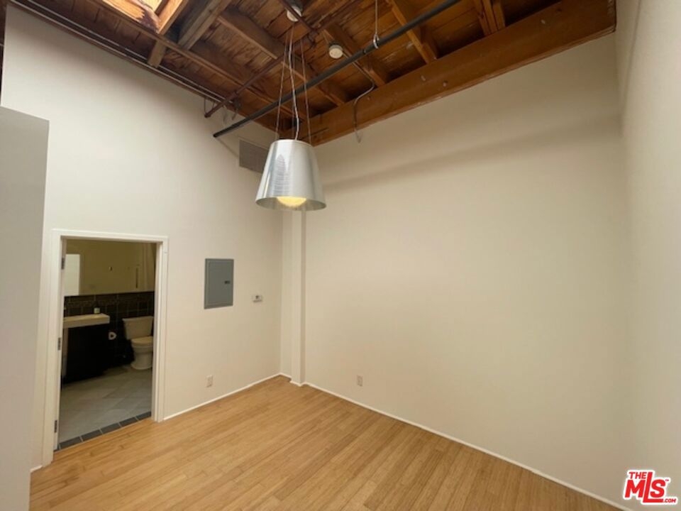 Dramatic wood beamed vaulted ceilings with clerestory windows bathe this ultra private loft in natural light. Rare top floor end unit in the highly sought after Molino Street Lofts building, situated in the center of the Arts District, with close proximity to the finest restaurants, coffee shops and boutiques that Downtown LA has to offer. Short distance to Bavel, Verve Coffee Roasters, Zinc Cafe, Urth Caffe, Bestia, Manuela, and many more!