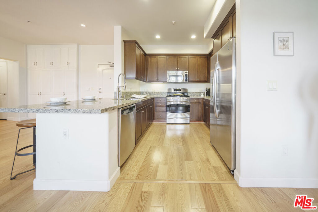 MURA by Pulte Homes is a JD Power award winning condo in the heart of DTLA Arts District. Unit #102 features an open and spacious living room which can be perfectly organized into a dining and lounge areas. The open kitchen features plenty of cabinet space and a large connected breakfast bar island. The master and second bedrooms are practically located on opposite ends of the unit and there's even a large laundry room with many cabinets for extra storage. The living room also opens up to a large private balcony, perfect for entertaining. Extra highlights include new HVAC system with updated Honeywell Thermostat, custom cabinets installed in living area, high ceilings and bright daylight during the day. Building amenities include 24/7 front desk/security, on-site management during business hours, great pool/spa area with skyline views of DTLA, updated fitness center, spacious open courtyard with fountains, fireplace lounge area and BBQ grills. FANTASTIC location in the heart of Arts District! Just a short walk to the trendiest shops, cafes, restaurants, and just a couple blocks from Little Tokyo! Recent addition of the metro line and a quick drive to freeways.