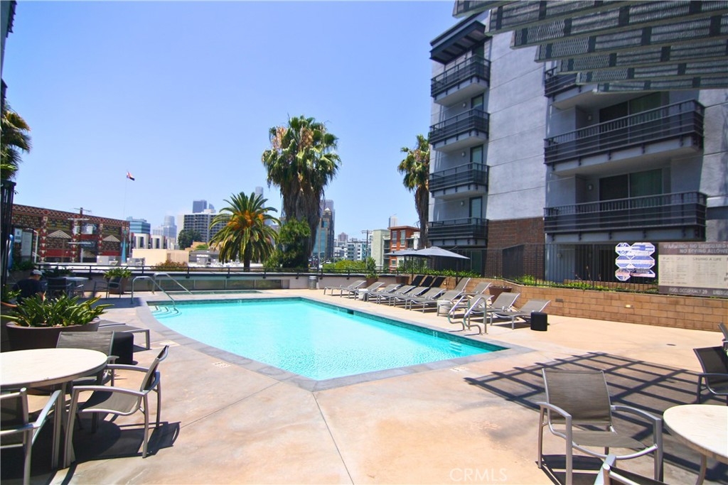Welcome to this single-level 2 bed, 2 bath luxury condo in The Mura. It is located in Little Tokyo, just minutes to the heart of Downtown LA, the vibrant Arts District, and tons of shopping, dining, and entertainment. This open-concept residence seamlessly blends contemporary design with urban convenience. This interior 5th floor unit has a lovely patio overlooking the courtyard and gets tons of natural light that illuminates the spacious living, dining, and kitchen areas. The well-appointed kitchen features stainless steel appliances and stone counters. The in-unit stacked washer and dryer provide added ease and comfort. This unit includes 2 assigned parking spaces and also a bonus spacious private storage room. Community amenities include a resort-style pool and spa, fitness center, BBQ area, and 24-hour security. The building is just a short walk from public transportation, with easy access to major freeways. Don't miss your chance to own this move-in-ready gem in one of Downtown LA’s most sought-after neighborhoods.