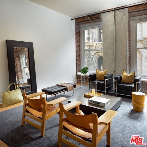 Perched at the epicenter of the historic core, loft 201 commands double height ceilings and commercial sized windows with a symmetrical classic brick loft floorplan. The Pan American Building is on the national register of historic places making this residence a very rare and unique opportunity to own a piece of history. Even more rare is the building consists of only 40 residences enhanced by the Mills Act Property Tax reduction and with 1 of only 4 street level deeded parking spaces making this classic loft the most desirable of the 40 residences. This loft residence has only 1 shared wall for an ultra private entrance with city views. Loft 201 is elevated further by superior historic core location flanked by the Grand Central Market and the future 2nd st metro station. High street retail and restaurant activations are continually opening making this superior loft a sharp location.