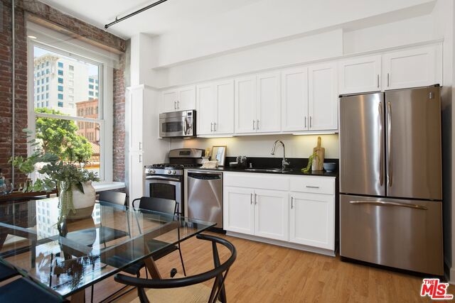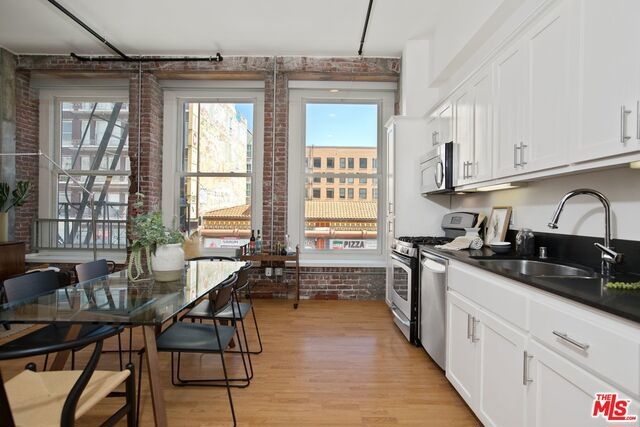 Uber Chic true open Historic Live/Work Loft in the Pan American building. High Ceilings, Lots of Windows and Light, Modern Kitchen with Stainless Steel Appliances, In-unit Washer/Dryer, laminate floors and gorgeous brick walls. One Covered Parking Space underground. Across the street from Grand Central Market. Walk to Metro Station and dozens of Restaurants and Shops. Building is Mills Act Approved with significant tax savings.