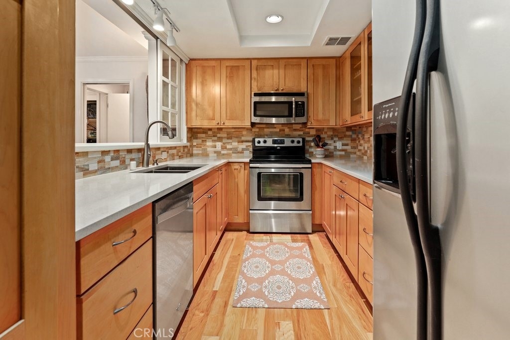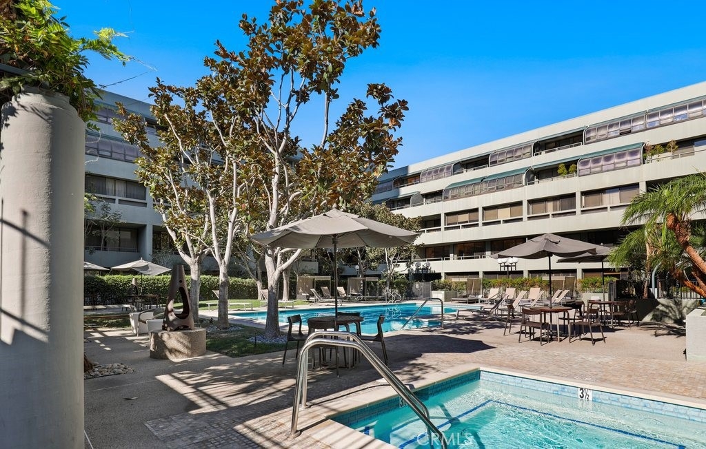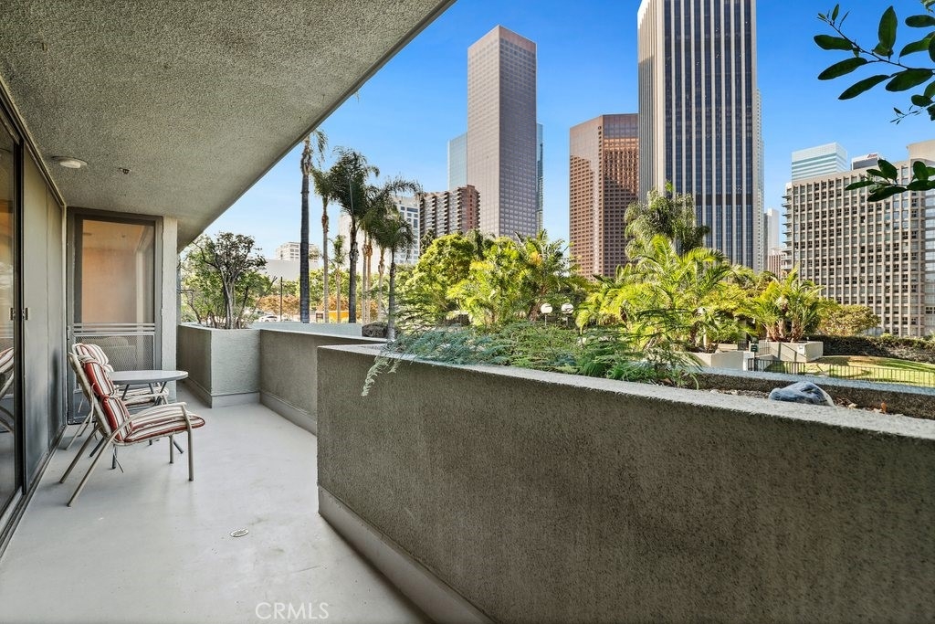 Welcome to the exclusive Promenade West Building. Situated in a unique location within the building, this unit has no shared walls and faces the downtown skyline. This spectacular home is very clean and was fully remodeled over the past 11 years with updated kitchen, bathrooms, hardwood flooring and high efficiency air conditioner. Home features a galley kitchen, large primary suite with large closet, two full bathrooms, spacious living room and balcony; with peaceful long views of the community garden and landscaping, side by side parking in two dedicated spaces, close to the garage elevator and much more. You may never want to leave, but if you do, the home is located in Downtown's Bunker Hill District, adjacent to the Los Angeles Financial District, and is just 2 blocks from Disney Concert Hall, The Music Center and the soon to open Grand LA. The heart of downtown and Grand Central Market are also just a few blocks away. The Promenade West is a very well maintained full service condominium complex that offers amenities including 24-hour security, concierge, meeting room, pool, spa, exercise room, sauna, on site manager, basic cable TV and ample guest parking.