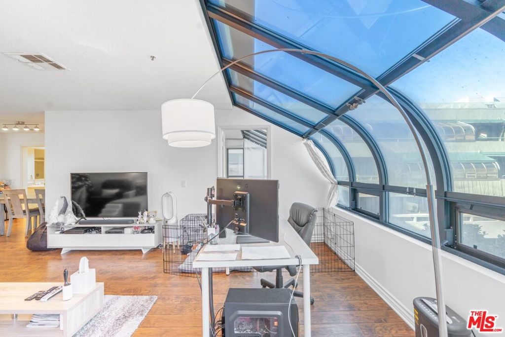 3D Tour: bit.ly/PromWest-504 Stunning poolside views from this exquisite corner home in the popular Promenade West community. Refreshing sunlight highlights this home's gorgeous and inviting features including the solarium windows, rich laminate floors, and private outdoor patio space. Experience absolute tranquility with each bedroom located on opposite ends of the home. In the master bedroom, enjoy an expansive bedroom with a walk-in closet along with extra storage cabinets, direct patio access, and en-suite bathroom offering a dual sink vanity, large soaking tub, and updates throughout. The guest bedroom showcases delectable corner windows, adjoining guest bathroom, and no shared party walls with any neighbors. In the warm and welcoming living area, delight in a swank dry bar and spacious dining room across from the large kitchen displaying a wide oversized countertop and an abundance of cabinet space. Promenade West offers a collection of amenities including pool, spa, BBQ, sauna, fitness center, business room, community lounge with kitchen, dog park, outdoor garden, waterfall garden, 24-hour security and concierge, and guest parking. Conveniently located in Bunker Hill, Promenade West is a short distance from Walt Disney Concert Hall, The Broad Museum, Grand Park, Grand Central Market, new upcoming Metro Stations, and the soon the be unveiled The Grand LA by Frank Gehry!