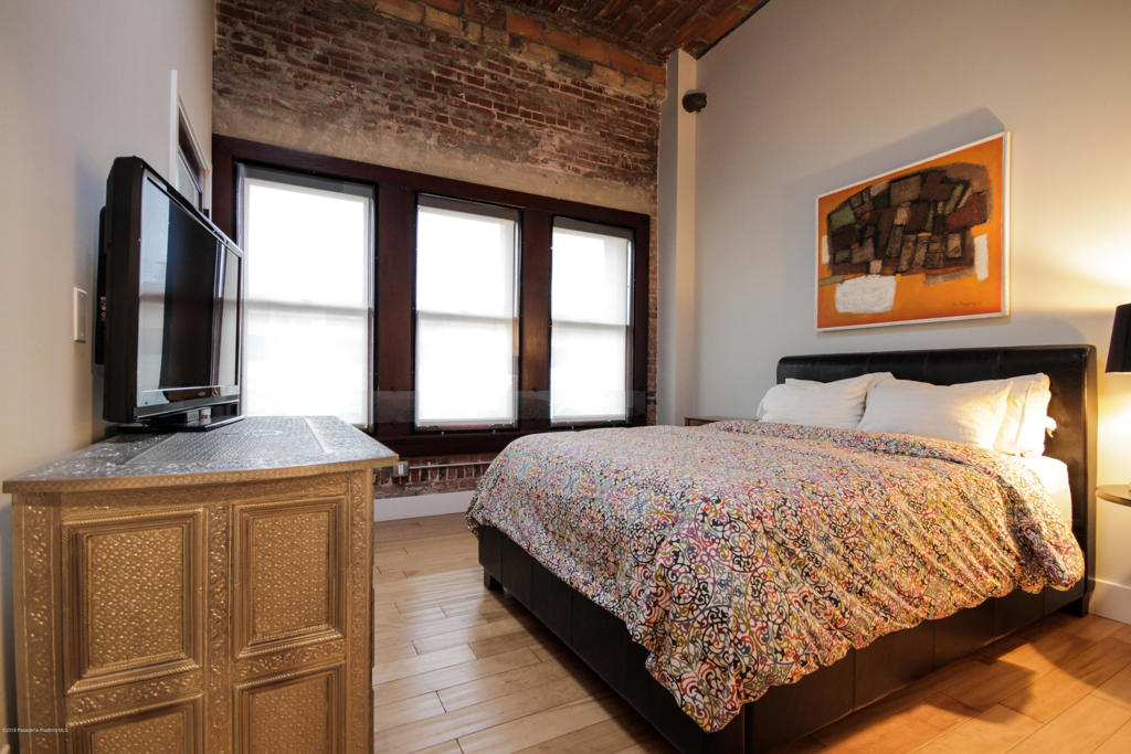 *RARE HISTORIC PENTHOUSE* Stunning Top Floor 1 Bed / 2 Full Bath South Facing Loft featuring 13ft Brick Barreled Ceilings w Skylights in Living and Master Suite in The Rowan Bldg. Custom pendant lighting, fully enclosed Master Suite with dual closets. Custom, built-in floor-to-ceiling wall unit. Custom open-concept kitchen comes with Italian Scavolini cabinets, SS refrigerator, stacked Bosch Washer/Dryer. Entire south-facing wall features a bank of professionally restored double hung Mahogany windows and exposed brick walls. The Rowan is a legendary 1910 Beaux Arts building that features Carrera Marble corridor walls and floors. Exterior communal area includes spa and BBQ area and Interior communal area lounge and lobby concierge Centrally located in the DTLA Historic Core, this loft is walking distance to top chef dining, Little Tokyo, Financial District, The Broad/Disney Concert Hall and 7th St Restaurant Row. Building qualifies for Mills Act (saving 50-70% off property taxes). Direct surroundings are experiencing $100M+ in commercial development.