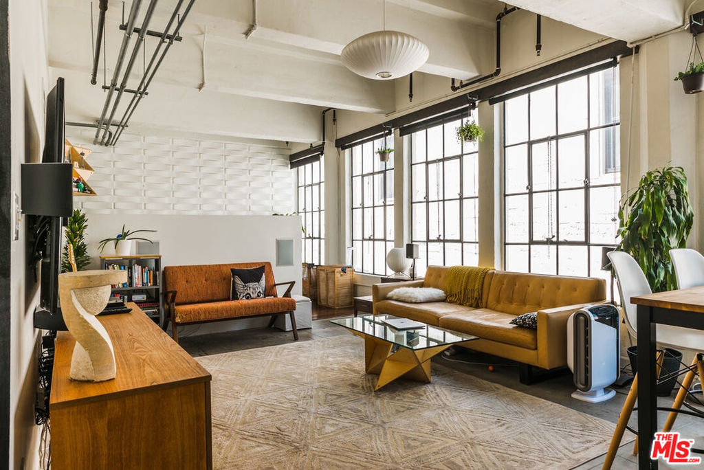 RARE OPPORTUNITY TO OWN A PENTHOUSE IN THE COVETED, HISTORICAL CORNELL BUILDING, one of the three buildings that make up the vibrant Santee Village in the Fashion District. The transformation to a lofts community was completed in 2007. and also approved for the Mill Act. *****All owners of the modernized lofts received up to 70% DISCOUNT ON THEIR PROPERTY TAXES, saving thousands of dollars. The unit shines bright and beautiful with a wall of original industrial steel-framed windows along the entire length of the living area. It has an open kitchen with modern cabinetry and stainless Bosch appliances. Renovated bathroom with full size bathtub, stackable Bosch W/D and granite counters; Energy-efficient HVAC System with Nest Learning thermostat. Unique to this unit are a walk-in closet with a bonus office nook inside; Bedroom divided by a half wall for privacy and wired with Surround Sound. ***** There are TWO parking spots, one is a rented spot underneath the complex and another dedicated spot in the nearby Maple St. garage which comes with the condo. The HOA also includes a convenient shuttle from and to this parking garage. ***** Amenities include 24-hour Courtesy Patrol, Secured Access, Stunning 360-degree view of DTLA on the rooftop across the three buildings, which is equipped with a BBQ area, Pool, Spas and Basketball Court. The Residents do not need to travel outside the complex because the animated DTLA life is just an elevator ride down to the courtyard with access to the Fitness Center, the Gourmet Market, Virtu Coffee and several restaurants: Broken Mouth, Holy Basil, Vegan Hooligans. It is centrally located and also close to Flagship Apple Store and the Metro.