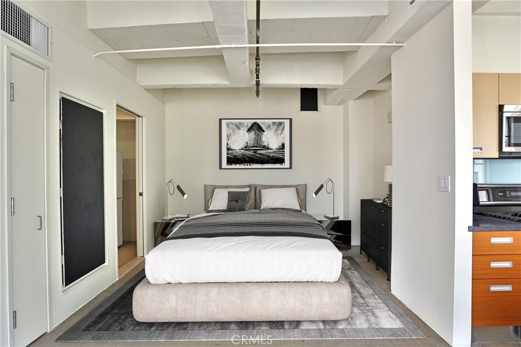 HUGE PRICE REDUCTION!! Amazing south facing loft studio in the heart of DTLA?s Fashion District -A rare opportunity to own one of the few units with a separately deeded, secured garage parking space within the building AND have views of the city! Park your car on the basement level and take the elevator straight up to your home! This historic building also qualifies for huge property tax discounts of up to 70% with the Mills Act! Great corner unit with only one shared wall, open floor plan and gorgeous wall-to wall windows! Enjoy the modern kitchen with spacious granite countertops, Italian cabinets and Bosch appliances. The bathroom has a generous sized soaking tub for relaxing, along with a stacked washer and dryer. This unit is move in ready with all appliances included in the sale! With 24-hour security and secured access, the building is nestled in Santee Village, a micro community that has its own mini market, food court and fabulous amenities - take the elevator and enjoy the views with two roof top jacuzzis', a short walk within the community to the pool, gym, various lounge areas, BBQ and sports court. All within steps to restaurants, shopping and nightlife! Please note: Parking space is separately deeded and included with this sale. Unit is on record as a 1 bedroom but there is no wall separating the bedroom from the living area. Photos with furniture are virtually staged.