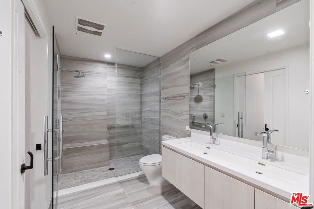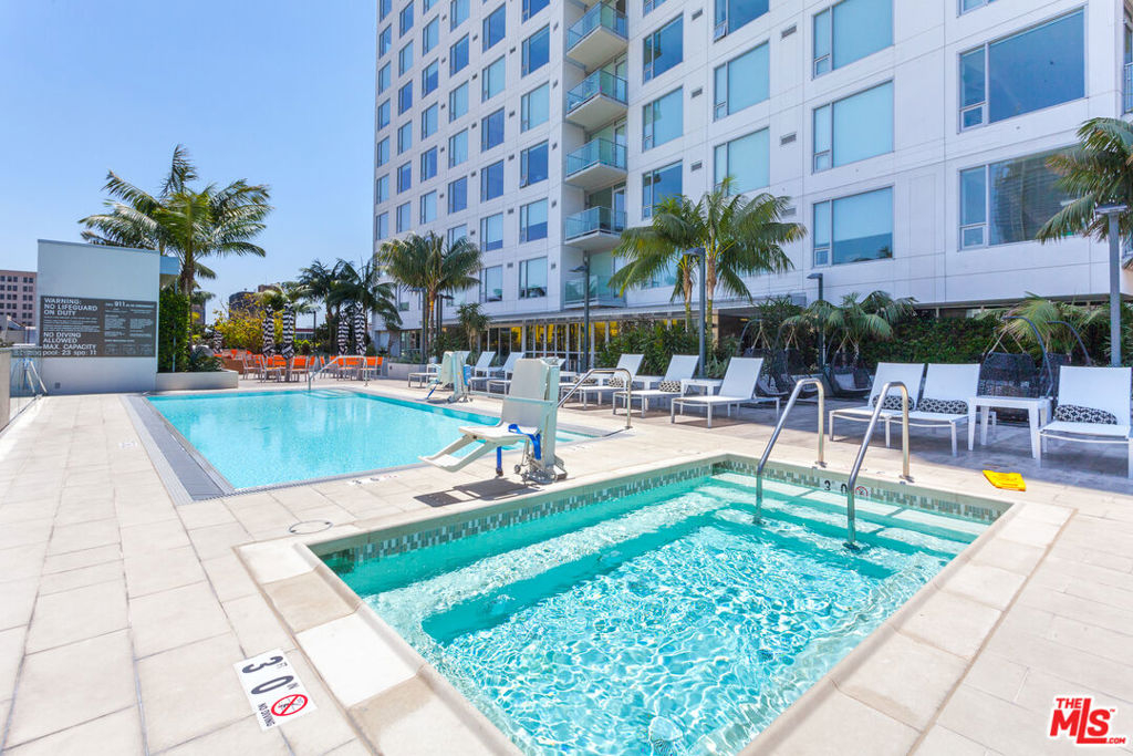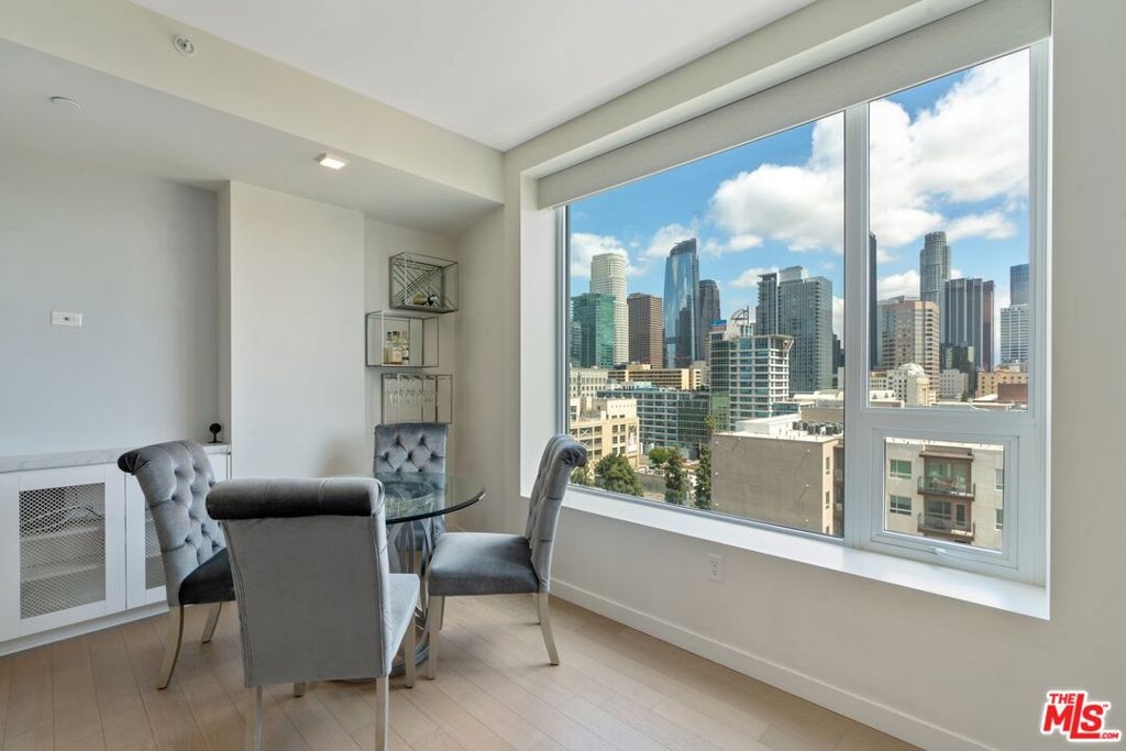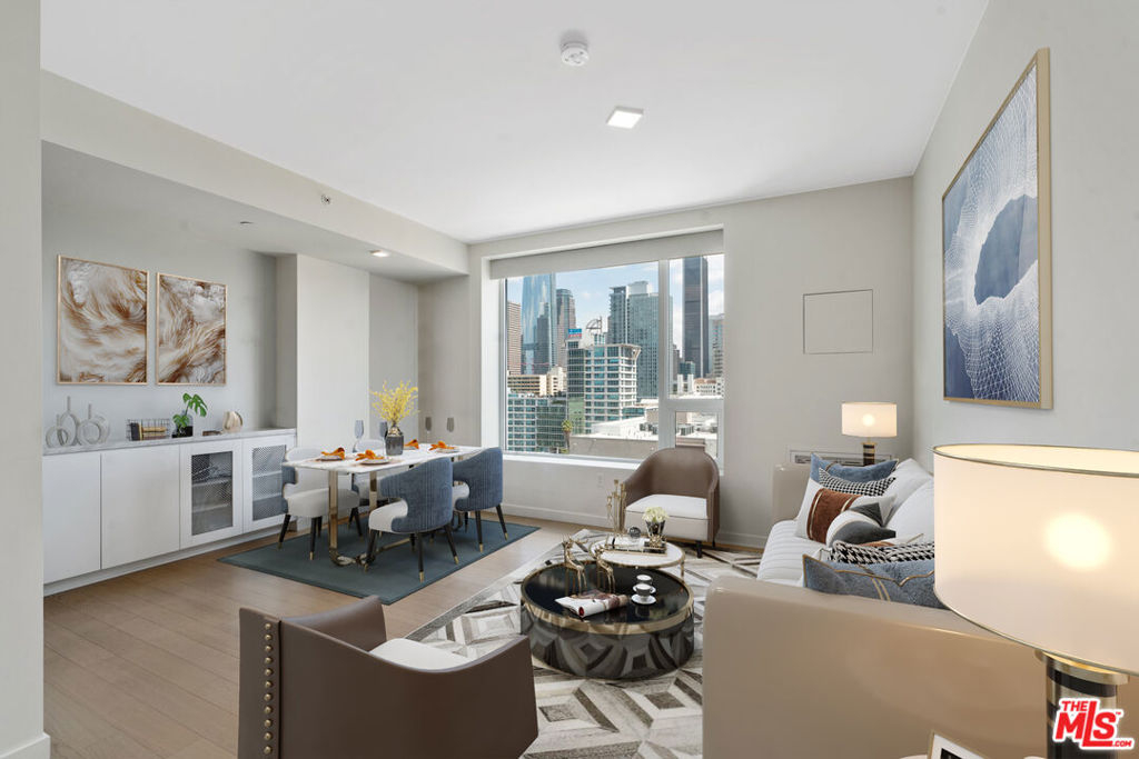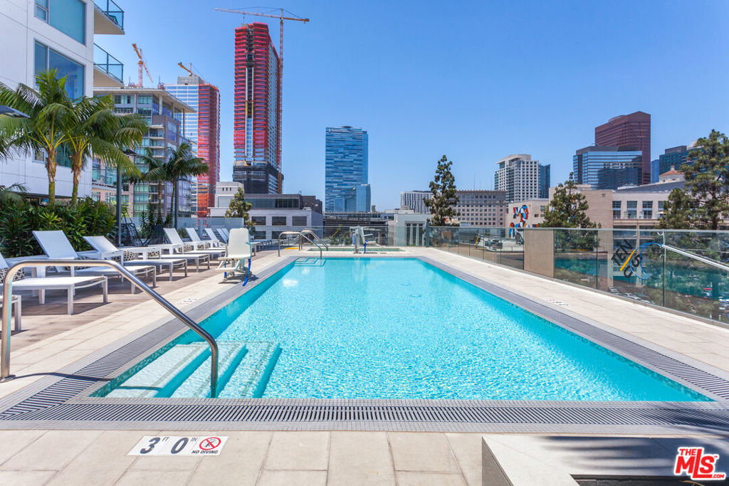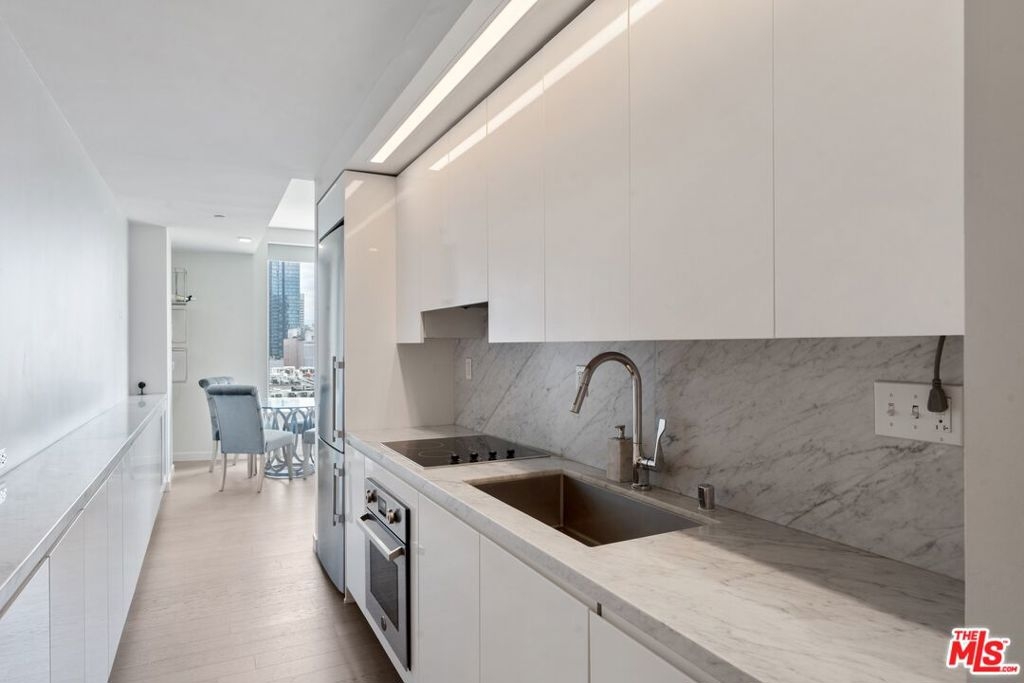 3D Tour: bit.ly/Ten50-1106 Breathtaking Downtown skyline views from this renovated one-bedroom condominium in the sought-after Ten50 building. This ravishing North-facing home offers radiant sunlight throughout the day highlighting the kitchens Carrara marble countertops and backsplash, soft-close Domus and Domus Italian cabinetry, gorgeous stainless-steel appliances, and custom-built wall-to-wall storage with matching marble and cabinet doors. The stunning bathroom features a quartz vanity surface with dual faucets, beautiful porcelain tiles, and one-of-a-kind matching shower bench custom designed by the building developer. From the living room, soak in jaw-dropping views of skyscraping towers or nestle away in the private bedroom with soft lush carpet and a walk-in closet with built out storage. Unique to this home is a HIGHLY DESIRABLE ONSITE DEEDED STORAGE CAGE, an envious parking spot, and nearly $40K in upgrades! Ten50 offers resort style amenities including an infinity-edge pool, spa, fire pits, barbecue grills, fitness center, community lounge, dining room, business center, media screening room, 24-hour security and concierge, and guest parking! Only a short distance from LA Live, Staples Center, Metro lines, and widely popular Downtown destinations.