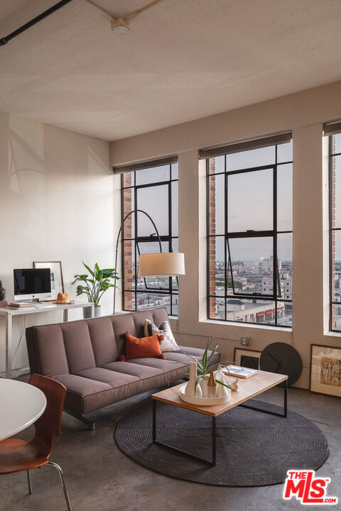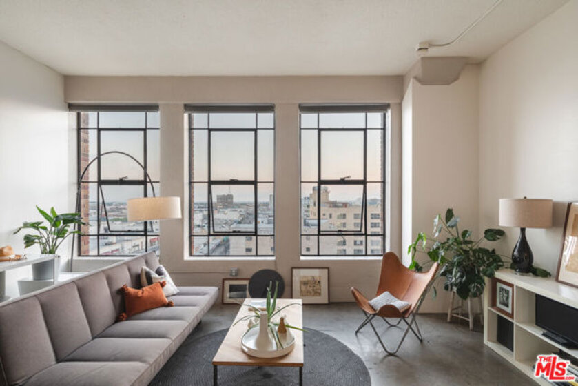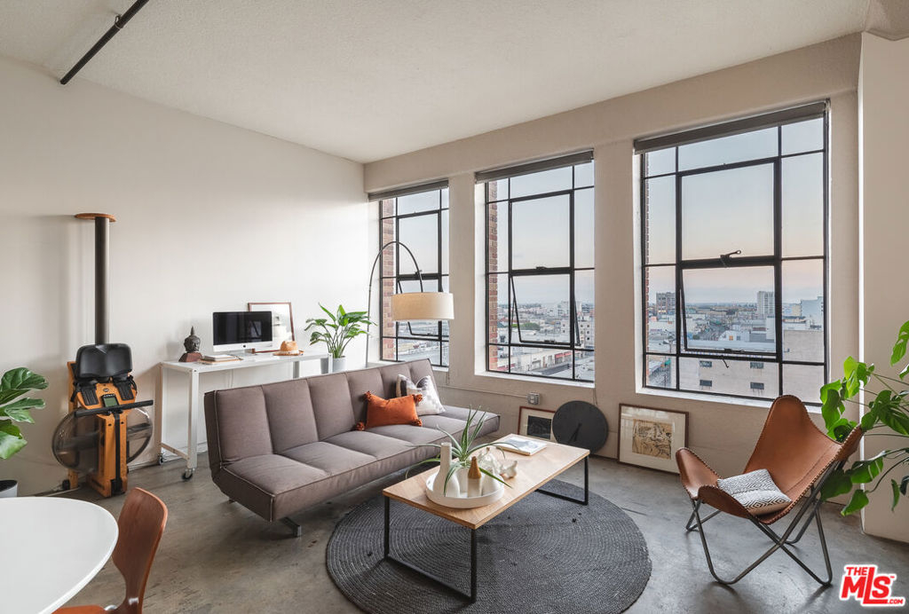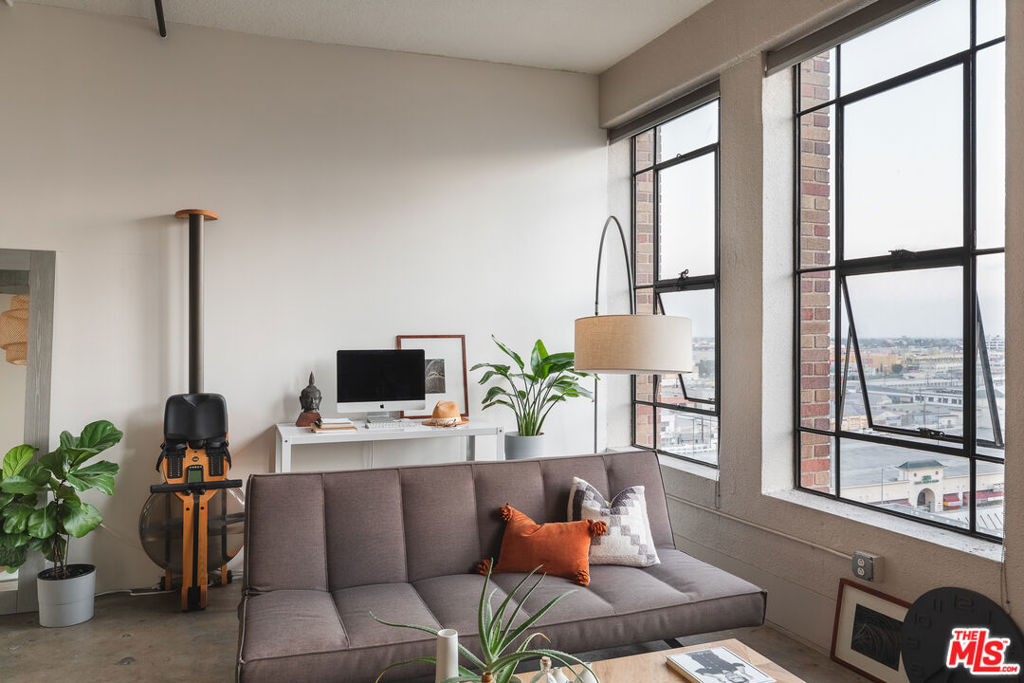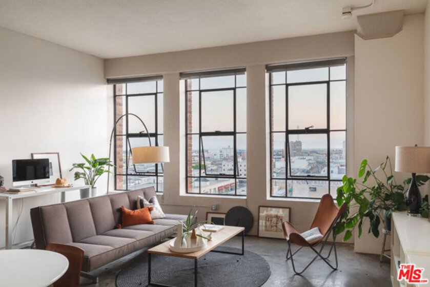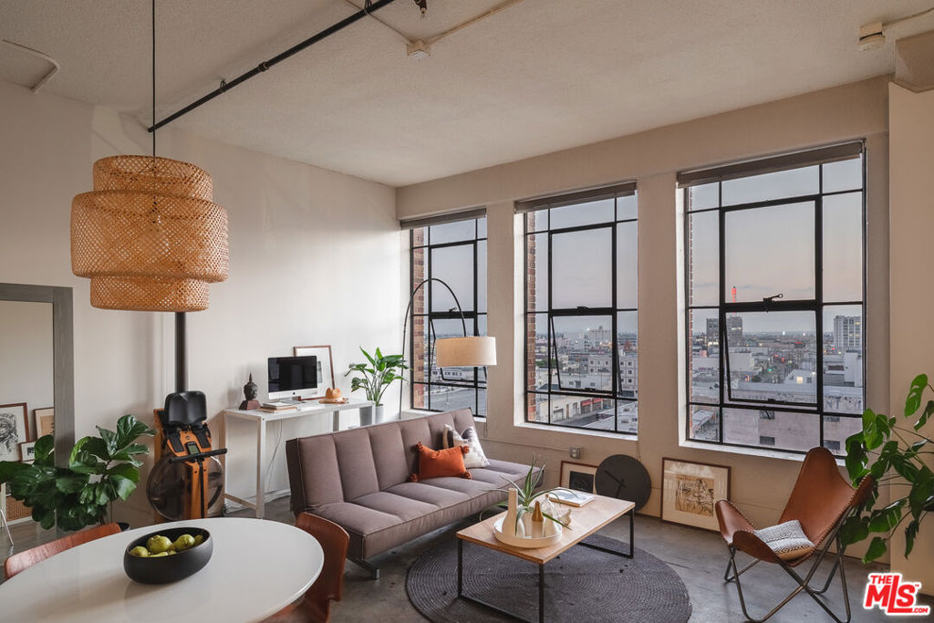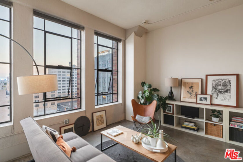 Welcome to unit 803 located in the historic Textile Building. This industrial style unit provides an abundance of natural light, high ceilings, and a separated bedroom making it the perfect downtown live-work space. With unobstructed views to the south, you will love the evening ambiance of this unit. Just imagine curling up with your favorite book watching the sunset on the city of Angels. The building is a part of Santee Court and provides many amenities such as Rooftop access, BBQ, gym, basketball court and more. The textile building falls under The Mills Act and will qualify for a significant annual tax break. The Unit comes with 1 parking spot and a small storage unit. Come see this cozy unit today before it's gone!