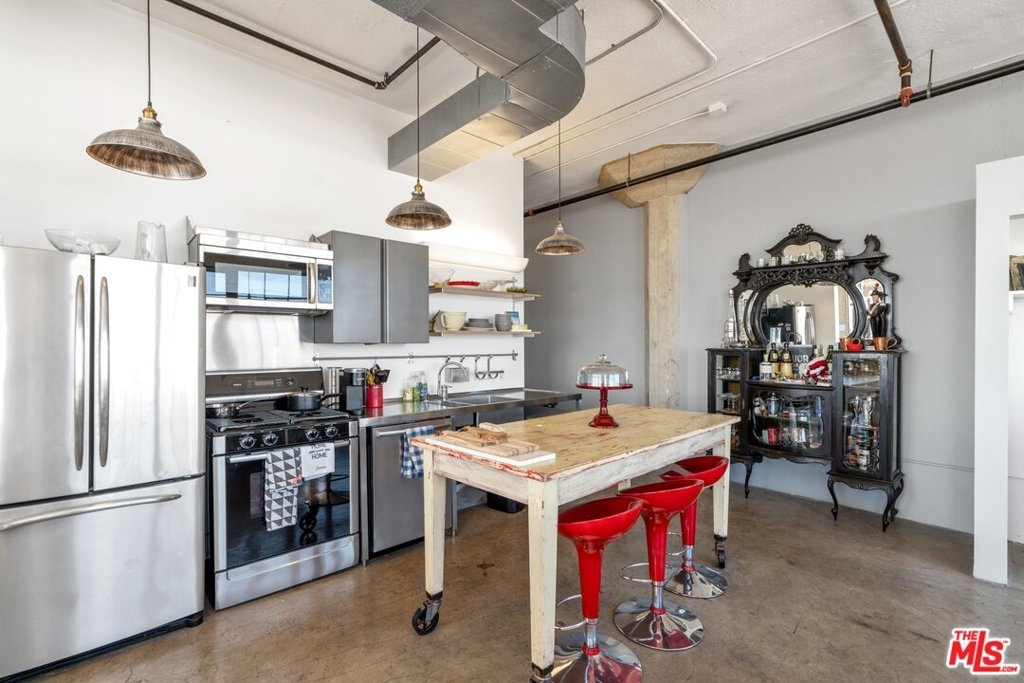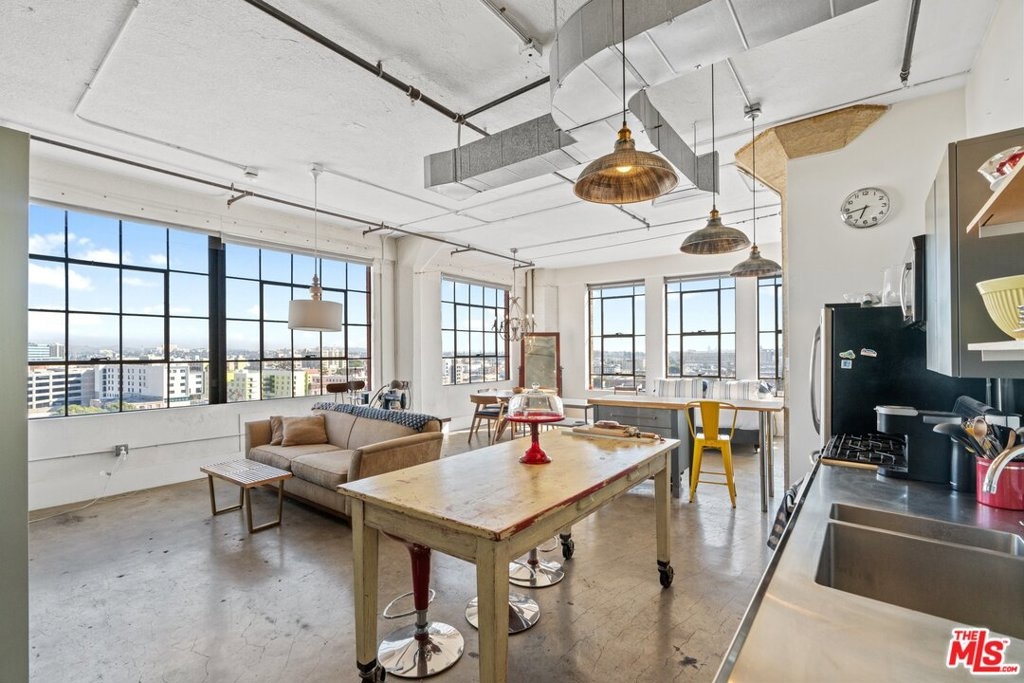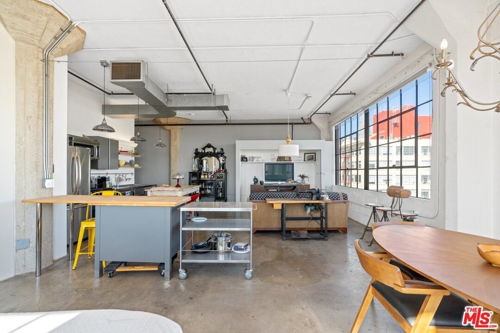 New York Style Live/Work Loft at the Historical Textile building part of the Santee Village complex. Corner unit with open floor plan featuring large industrial windows with amazing views, concrete floors, and high ceilings. Updated kitchen and bath with washer and dryer inside. One parking space included in the complex, and a storage unit in the basement. Mills Act approved building with substantial property tax savings. Santee Village is located in the Fashion District and features many amenities spread out on several buildings, all in the same block forming the Village. Amenities include a gym, pool, spa, BBQ areas, basketball court, golf putty, dog area, and much more, steps from many restaurants and shops.