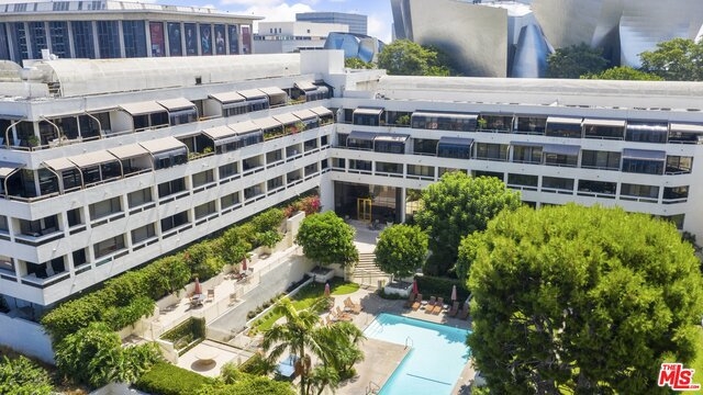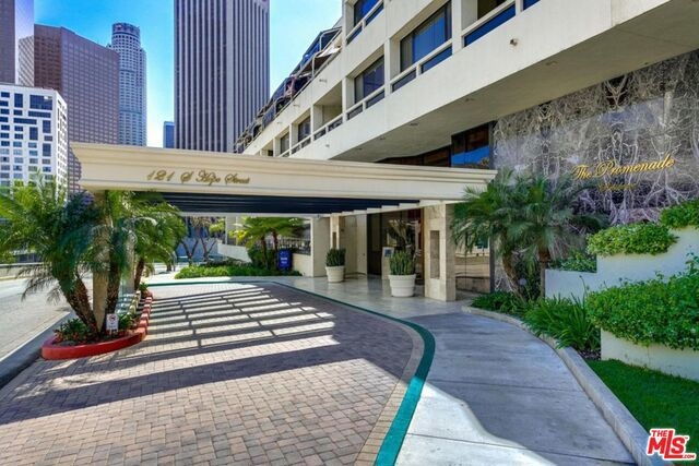 Serenity awaits in this move-in ready two-bed, two-bath home flooded with natural light featuring two large patios with built-in awnings, views of the Walt Disney Concert Hall and DTLA skyline that flow seamlessly with the spacious open floor plan combining kitchen, dining, and living spaces. The master bedroom features a huge walk-in closet, en-suite bathroom, and additional storage. While in the second room, its versatility allows for a bedroom or a sizable office and lounge that leads out to the living room. The prestigious Promenade residences offer a collection of amenities including pool, spa, fitness center, expansive garden, 24-hour security, concierge, and guest parking. Ideally located in Bunker Hill, within steps of the Music Center, Broad Museum, Grand Park, Grand Central Market, mass transit, shopping, and restaurants. Recent updates include new HVAC, new carpet, fresh paint, and resurfaced patios. HOA dues include utilities, cable, internet, & earthquake insurance.