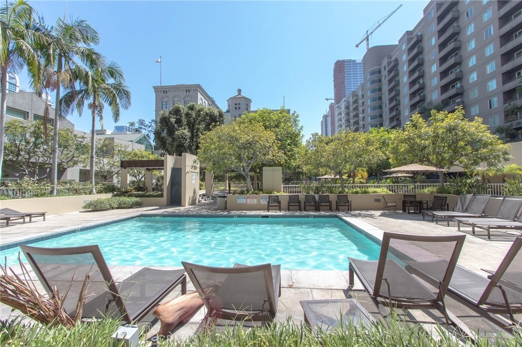 Charming Condominium in Los Angeles, The Skyline, with beautiful city views. The unit has one bedroom and one bathroom with Newer Paints and has a balcony at the living room. New Countertops, New Cabinets, and New Appliances in Kitchen. Washer and Dryer are included in the unit. Community Amenities have club house, racquetball court, pool, and spa. 24 hour security with controlled entrance. Great location that closed to Ralphs, Starbucks, and more. Must see!