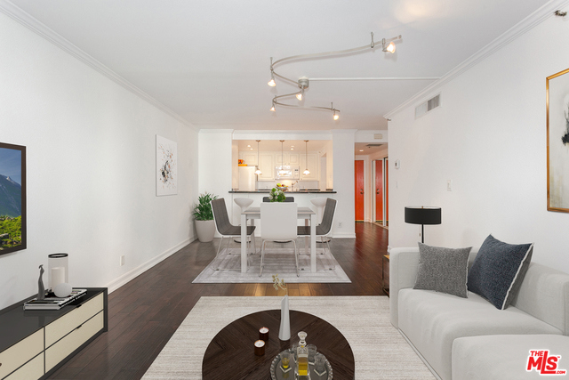 This fantastic one-bedroom, one-bathroom residence at SkyLine features a unit-length balcony accessible from both the living room and bedroom. It's smart and well-appointed floor plan features a remodeled kitchen with marble countertops, recessed lighting, and breakfast bar, dark hardwood floors, a large and bright bedroom, remodeled bathroom, stackable washer and dryer, and deeded parking and storage. Skyline offers homeowners a vast array of amenities, including 24-hour security and controlled entry, an extra-large courtyard and sun deck, in-ground pool, two spas, two community barbecues, conference room, fitness center equipped with two racquetball courts, cardio and weight rooms, locker rooms with dry saunas, a small patio off the weight room, and 13 guest parking spaces. Skyline is conveniently located at the heart of South Park with a Panini Cafe and Starbucks at lobby level, Ralph's Fresh Fare across the street, and two blocks from Whole Foods and more.