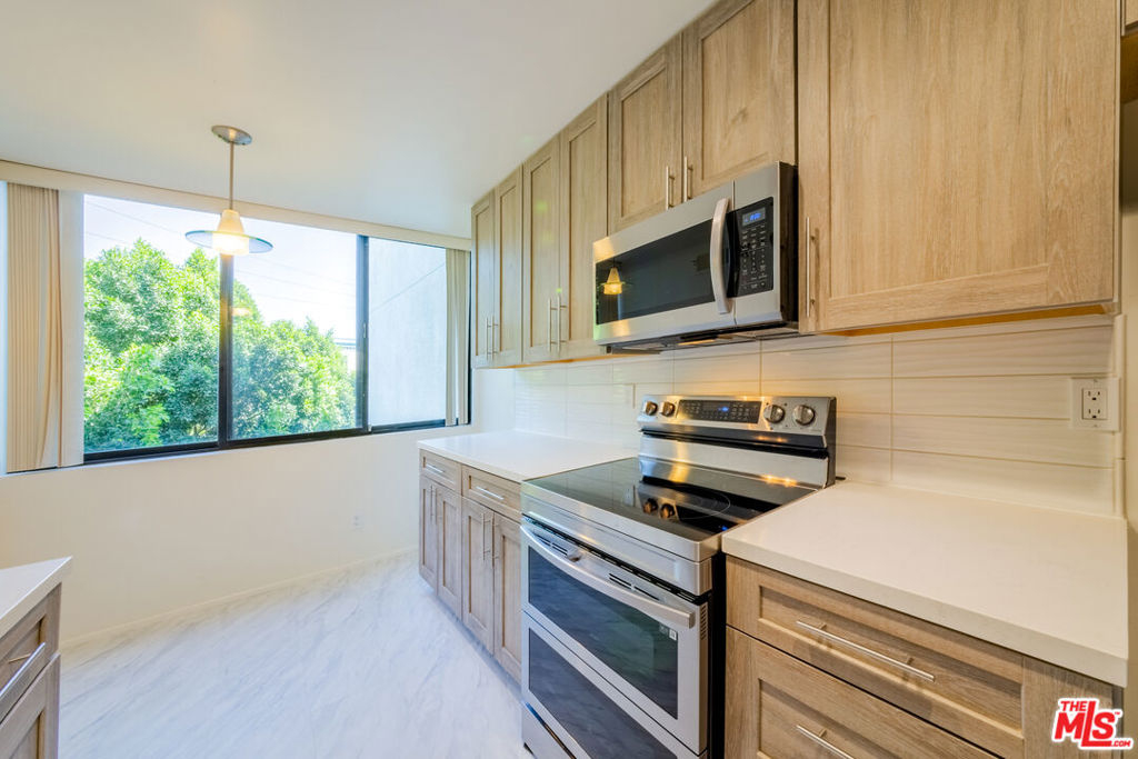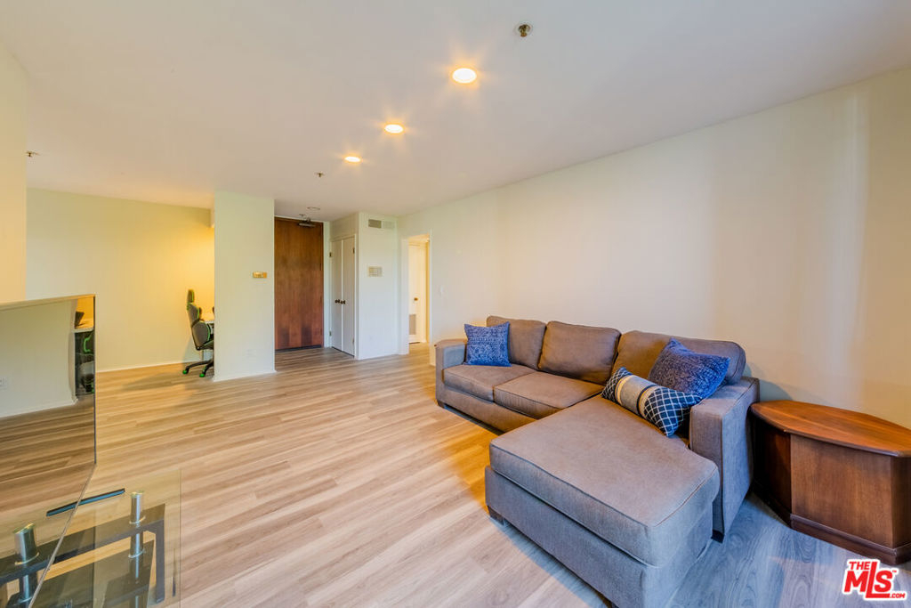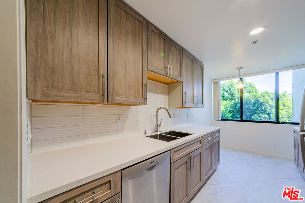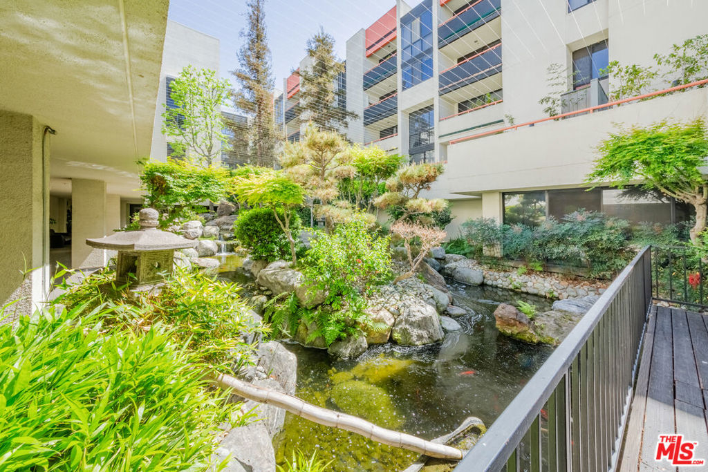 Nestled in the heart of Little Tokyo, this sleek, upgraded, bright home in the highly sought after Tokyo Villa, offers an escape from the hustle and bustle of Downtown LA. Thoughtfully designed with nature in mind, you'll find a lively Koi pond surrounded by serene Zen landscaping in the interior courtyard. The lush oasis brings about a sense of tranquility with its trickling streams and darting, colorful koi fish. Noted as one of the largest one bedrooms in the building, step inside and you'll experience a tastefully remodeled, modern interior that combines light luxury vinyl flooring and sleek appliances for a luxurious feel. The spacious floor plan has an open concept living and dining area that's perfect for entertaining your guests or having a cozy night in. Take a look around, and you'll also find a den area that's perfect for a home office or a wet bar. Flowing into the primary bedroom, you'll be met with carpeted flooring and ample storage space. The newly remodeled bathroom features a dual vanity and a stacked in-unit, full size laundry. For home cooks that love to release their creative flair, you'll find a remodeled galley kitchen that features new cabinets, paint, stainless steel appliances, and plenty of storage space. When it comes to parking, you'll have two tandem spots in a gated community garage. Living in the community also offers great amenities. New owners will find an indoor hot tub, sauna, meeting room, fitness center, and 24-hour front desk and nighttime security. When it comes to the day/nightlife, restaurants and transportation, Tokyo Villa is within minutes of the Japanese Village Plaza, specialty restaurants, markets, Civic Center, and the Metro Gold Line.