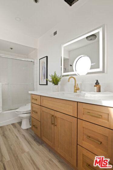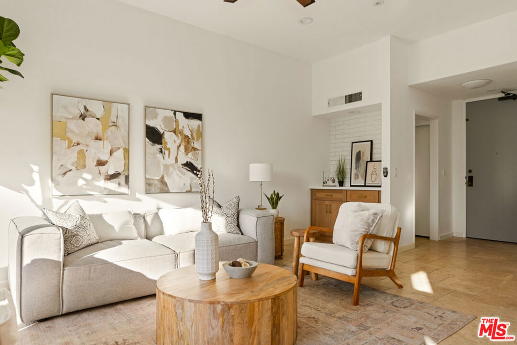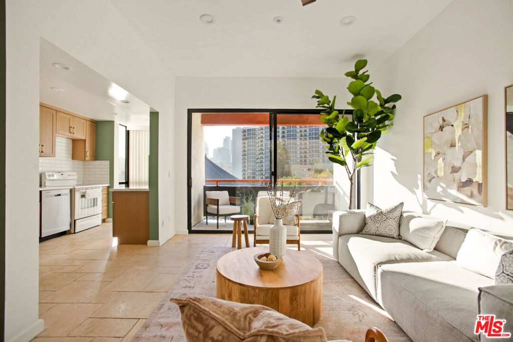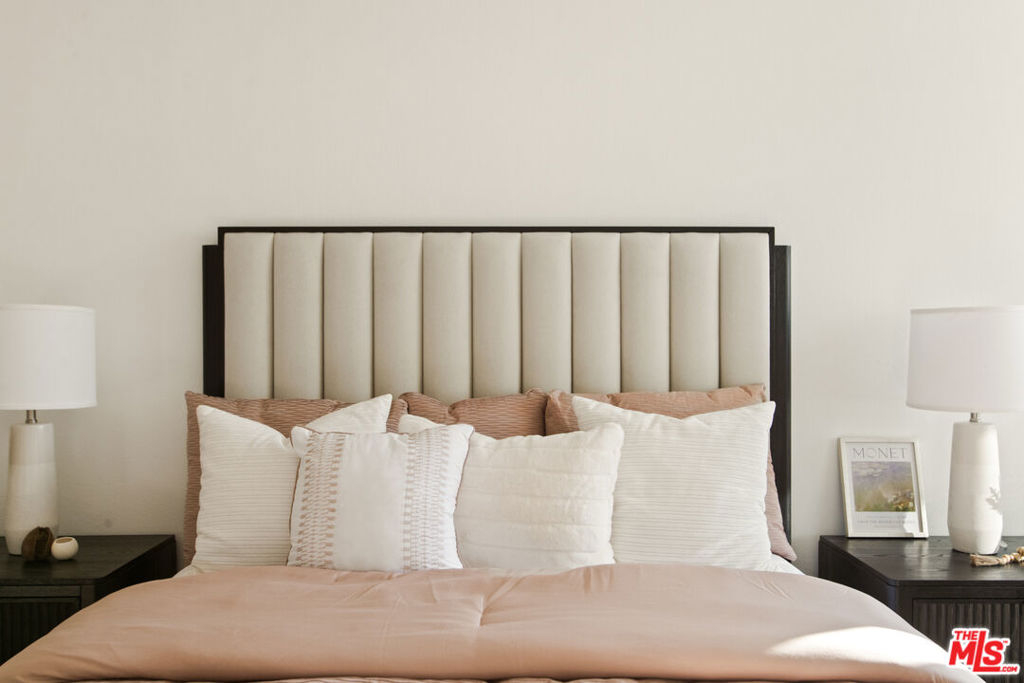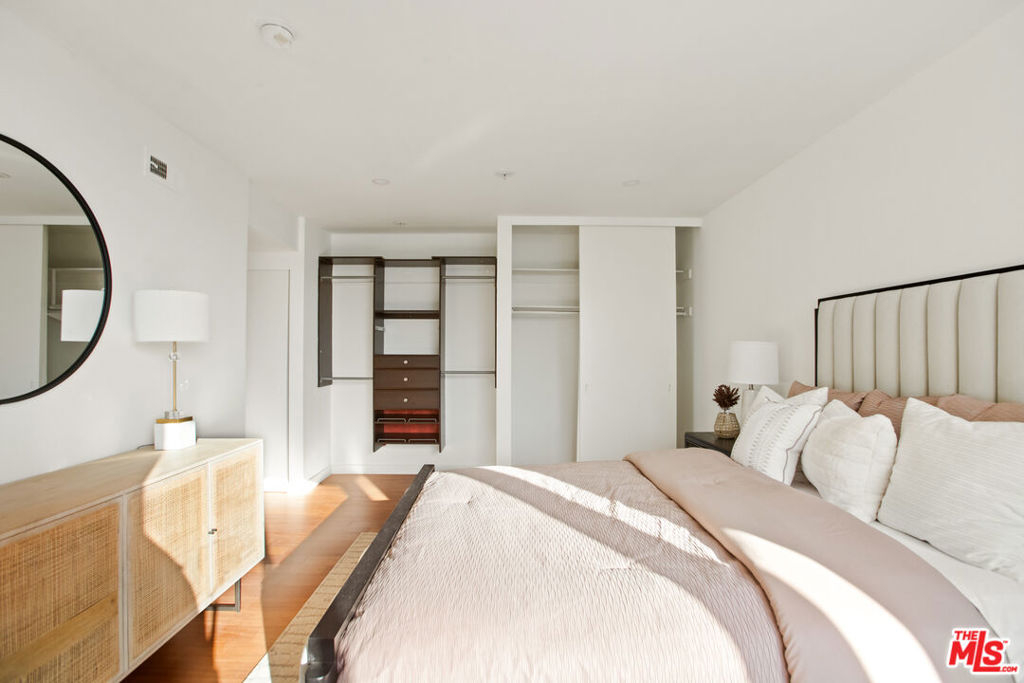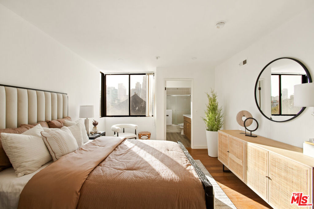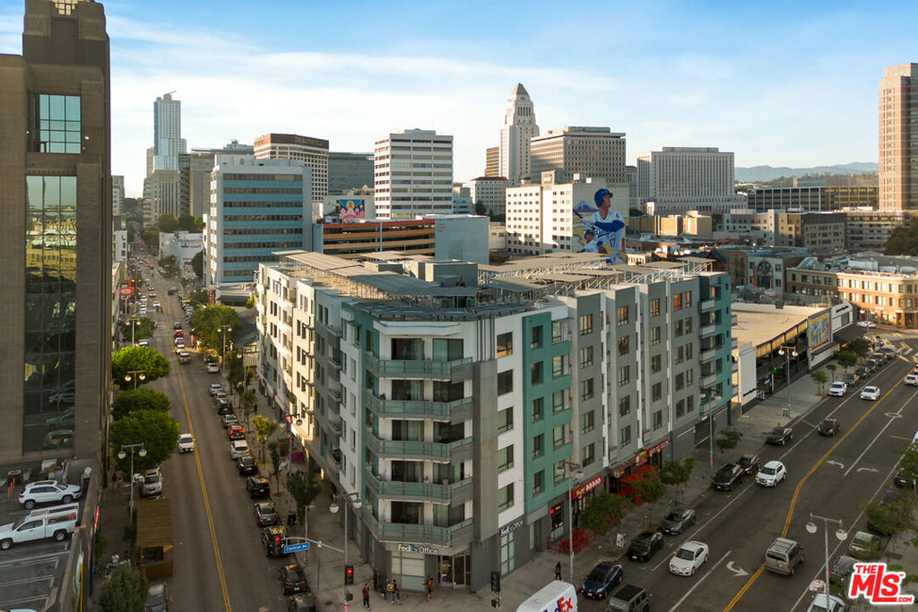 Little Tokyo PENTHOUSE CONDO! This unit belonged to the builder of the condo because he saved this one for himself! And it's easy to see why: it has the best views in the building of the downtown skyline. It's perched at the very top with no one above you. It offers sweeping views with an unmatched sense of privacy. Inside, enjoy TWO oversized bedrooms, TWO beautifully updated bathrooms, and brand-new kitchen, bar, and bathroom cabinetry designed for both style and function. Natural light floods the open layout, highlighting the home's clean, modern finishes and spacious flow. Enjoy gorgeous views of the sunset from the living room or while relaxing on the balcony. The building itself is a hidden gem straddling the border of Little Tokyo and the Artist's District. Residents enjoy access to a fully equipped gym, a tranquil koi pond courtyard, dry sauna, and peace of mind with 24/7 guarded front desk security. Two dedicated covered parking spaces in the gated garage add convenience to the lifestyle. Just steps from the Artists District, Little Tokyo and downtown LA's best dining and culture, this penthouse combines luxury living, rich history, and an unbeatable location. A truly one-of-a-kind opportunity.