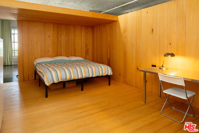 Located in The Toy Factory Lofts in Downtown LA's vibrant Arts District is this stunning 1 bedroom/1 bathroom loft. Soaring high ceilings and original concrete floors create an industrial-chic vibe, while the custom architectural wood paneled bedroom adds sophistication and convenience. The open floor plan seamlessly flows into the remodeled all-black kitchen and spacious living room with views from the giant original windows. Additional upgrades include in-unit laundry, custom window coverings, and expansive closet/storage build-outs for ease of living. Residents of the Toy Factory Lofts can enjoy top-notch building amenities such as a gym, rooftop pool with cabanas, third-floor entertaining deck with skyline views, and 24-hour security/concierge. Just moments away from the best shopping and dining options in the DTLA Arts District, this property offers the perfect blend of style, comfort, and convenience.