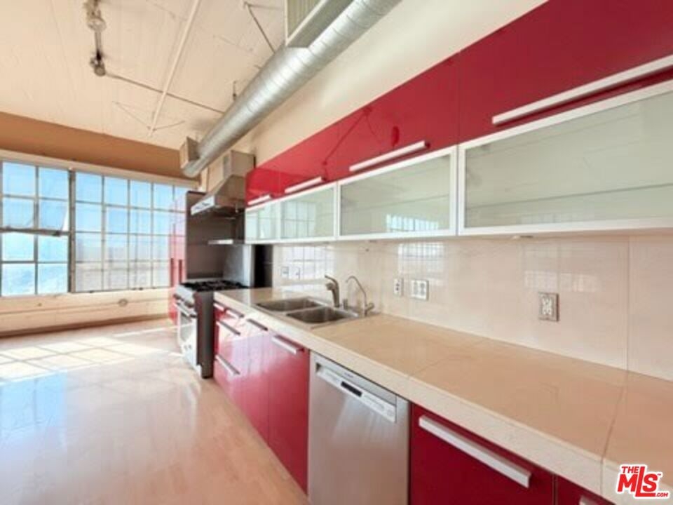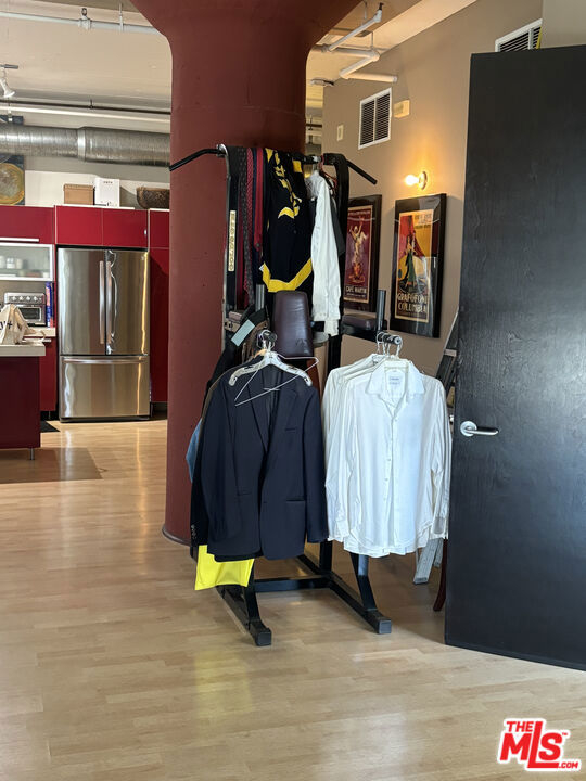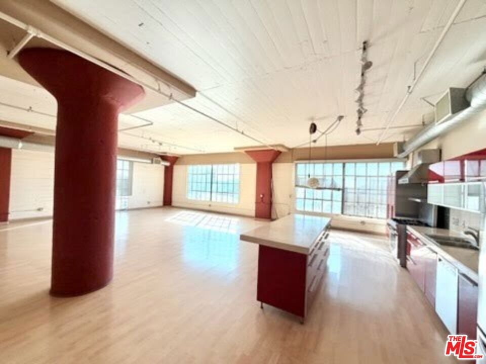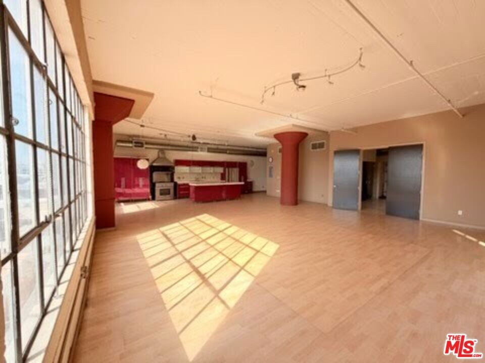 Experience elevated urban living in this expansive 5th-floor corner residence at the iconic Toy Factory Lofts, located in the heart of Downtown LA's vibrant Arts District. This bright and open loft features soaring 11-foot ceilings, oversized windows with southwest-facing city skyline views, and a flexible floor plan ideal for both residential and live/work use. The spacious kitchen is outfitted with stainless steel appliances, halogen lighting, and a center island perfect for entertaining. The primary suite offers a walk-in closet, an upgraded bathroom, and a glass-enclosed steam shower. Additional highlights include laminate hardwood flooring throughout and a custom built-in wall library. Enjoy an exceptional suite of amenities including a fully equipped fitness center with Pilates reformers, a lush landscaped courtyard with BBQ grills, and a stunning rooftop sky deck featuring a year-round heated pool with panoramic 360-degree views of Los Angeles. Amazon lockers are conveniently located on-site, and the residence includes two assigned parking spaces in a secure, attached garage along with 24-hour front desk service. Originally constructed in 1924 by the Santa Fe Railroad and thoughtfully redeveloped in 2006, the Toy Factory Lofts are a standout example of adaptive reuse, blending historic industrial character with modern design. Noteworthy architectural features include original concrete columns, signature curved walls, and preserved rail spur elements. The building sits directly across from the Biscuit Company Lofts and within walking distance to some of the Arts District's most acclaimed restaurants, cafes, and cultural venues. HOA dues include water, trash, sewage, parking, and general liability/fire insurance. Residents pay for their own gas, electricity, and internet. This is a rare opportunity to own a piece of Los Angeles history in one of the city's most dynamic and creative neighborhoods.