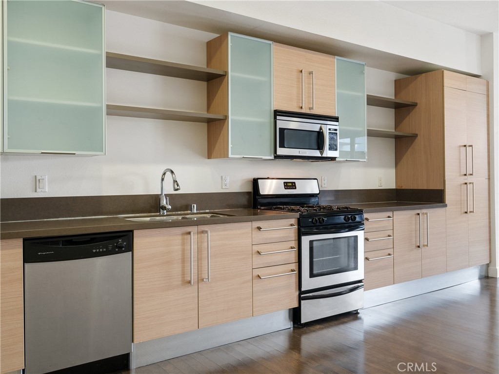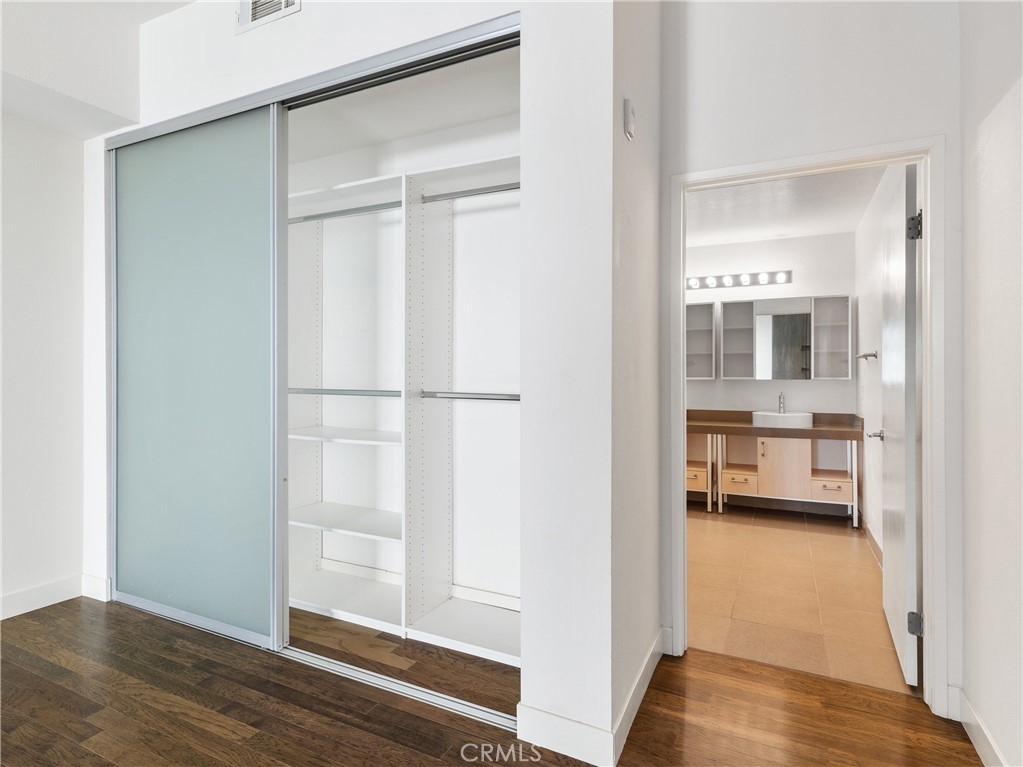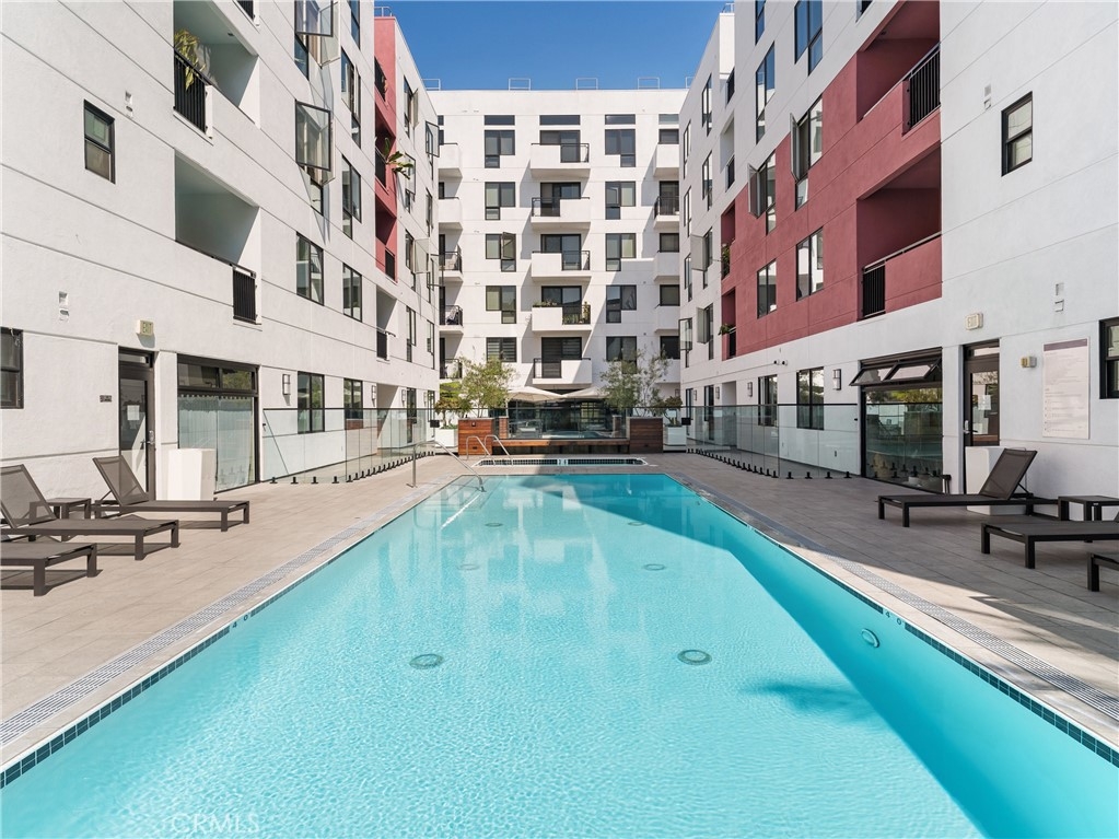 Enjoy downtown living in this open floor plan, tall ceiling 1 bed + 2 bath + flex space loft featuring a large kitchen, expanded living room, and bedroom. Extra large living room area has potential to add a bonus room for use as office or 2nd bedroom. This end-unit condo is inside VERO, a prestigious building with high class amenities, services, and 24 hour guard attended lobby. Stainless steel appliances complement the spacious kitchen. Custom built-in shelves create an entertainment center in the living room. Large windows let in light through the afternoon. Sliding doors separate the master bedroom with a master suite. Spacious master bath bath has dual vanity, tub. Powder room for guests to use. Unit has its own AC and washer/dryer hookups. Parking is 2 spots, tandem. Building has easy guest or retail parking. This unit has a pool view and has quick and easy access to amenities. VERO features heated pool, sauna, yoga dance studio, large gym with updated fitness equipment, BBQ equipment, fire pits, and front desk security person. This residence is ideal for easy access to major freeways and just minutes away from Downtown Financial District, shopping center, Koreatown, Chinatown, Echo Park, Silver Lake, USC, and fine dining. Close to other transportation corridor such as Metro and Amtrak stations. Entertainment centers LA Live, Crypto.com Arena (Staples Center), Hollywood Bowl, The Greek, Griffith Observatory, Wiltern, SoFi Stadium, LA Philharmonic, MOCA, the Art District, Little Tokyo, etc.